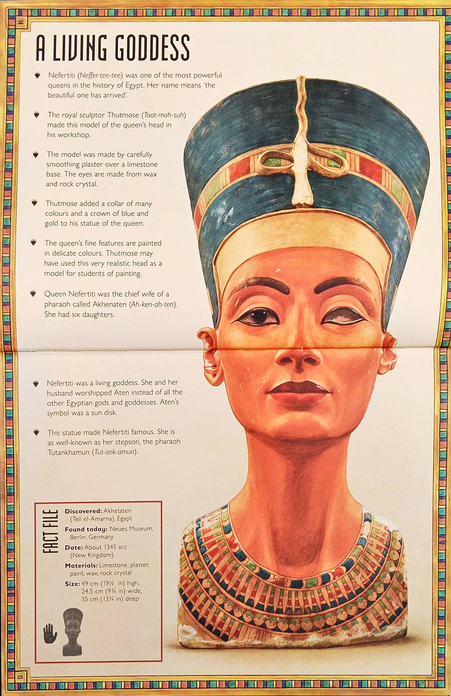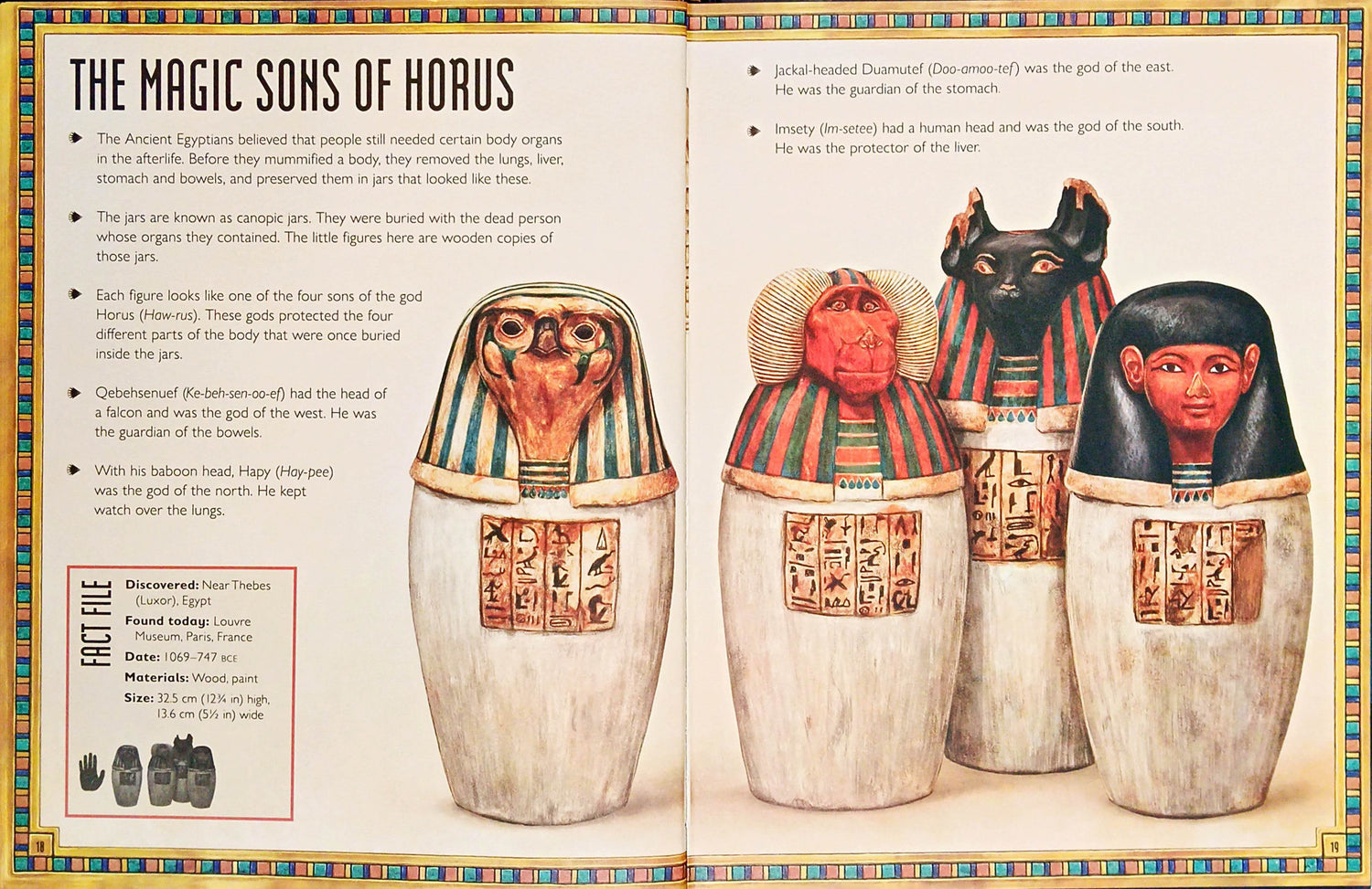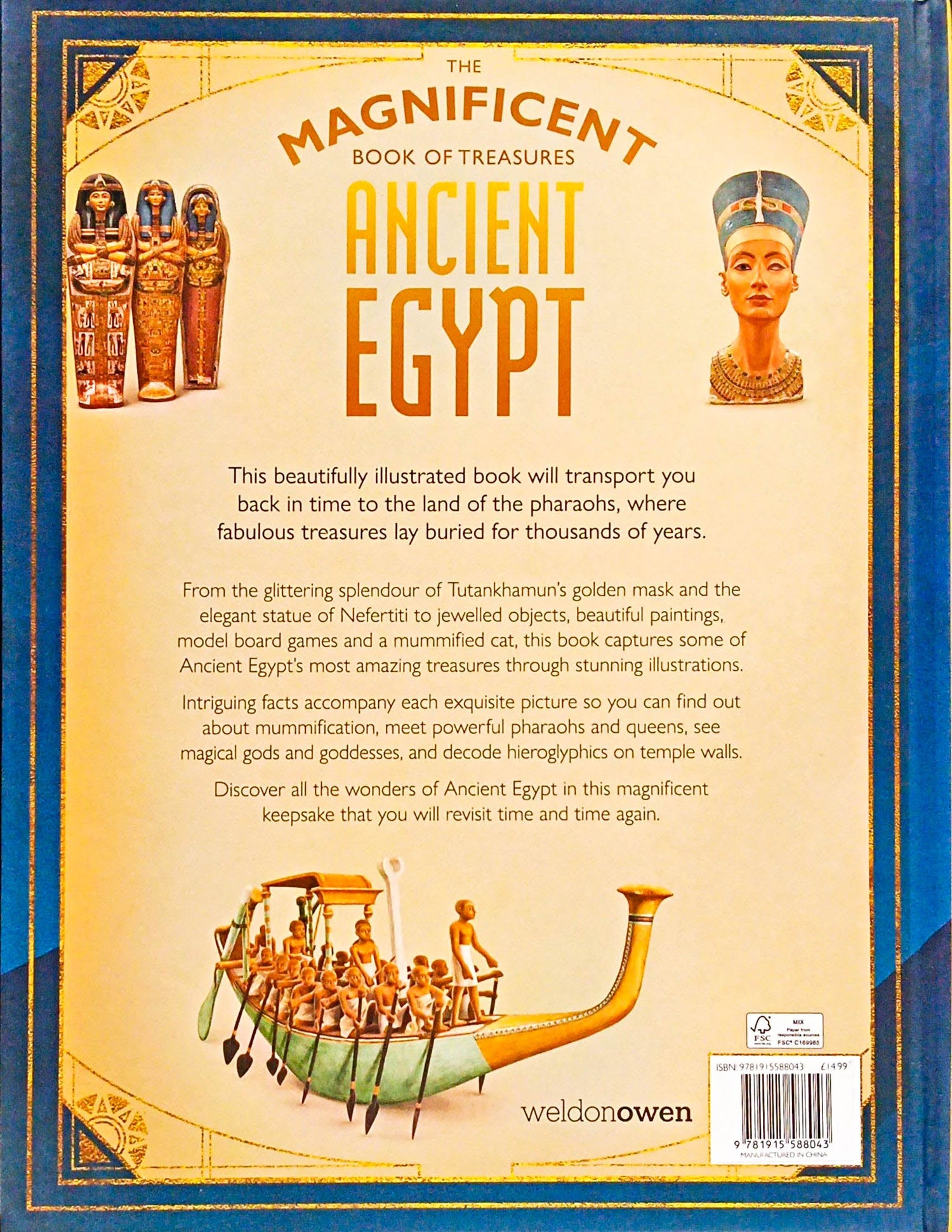 Take a thrilling journey back in time to the land of the pharaohs. This beautifully illustrated book is full of ancient secrets, glittering gold, priceless treasures and Egyptian stories from more than 3,000 years ago. Meet mighty pharaohs and powerful queens. Awaken mythical gods and magical goddesses. Unwrap a pharaoh's mummy and decipher hieroglyphics. Discover why an amulet is lucky and what gruesomness hides inside a canopic jar. Watch everyday life along the River Nile. Every page reveals a fabulous treasure and its unique story.