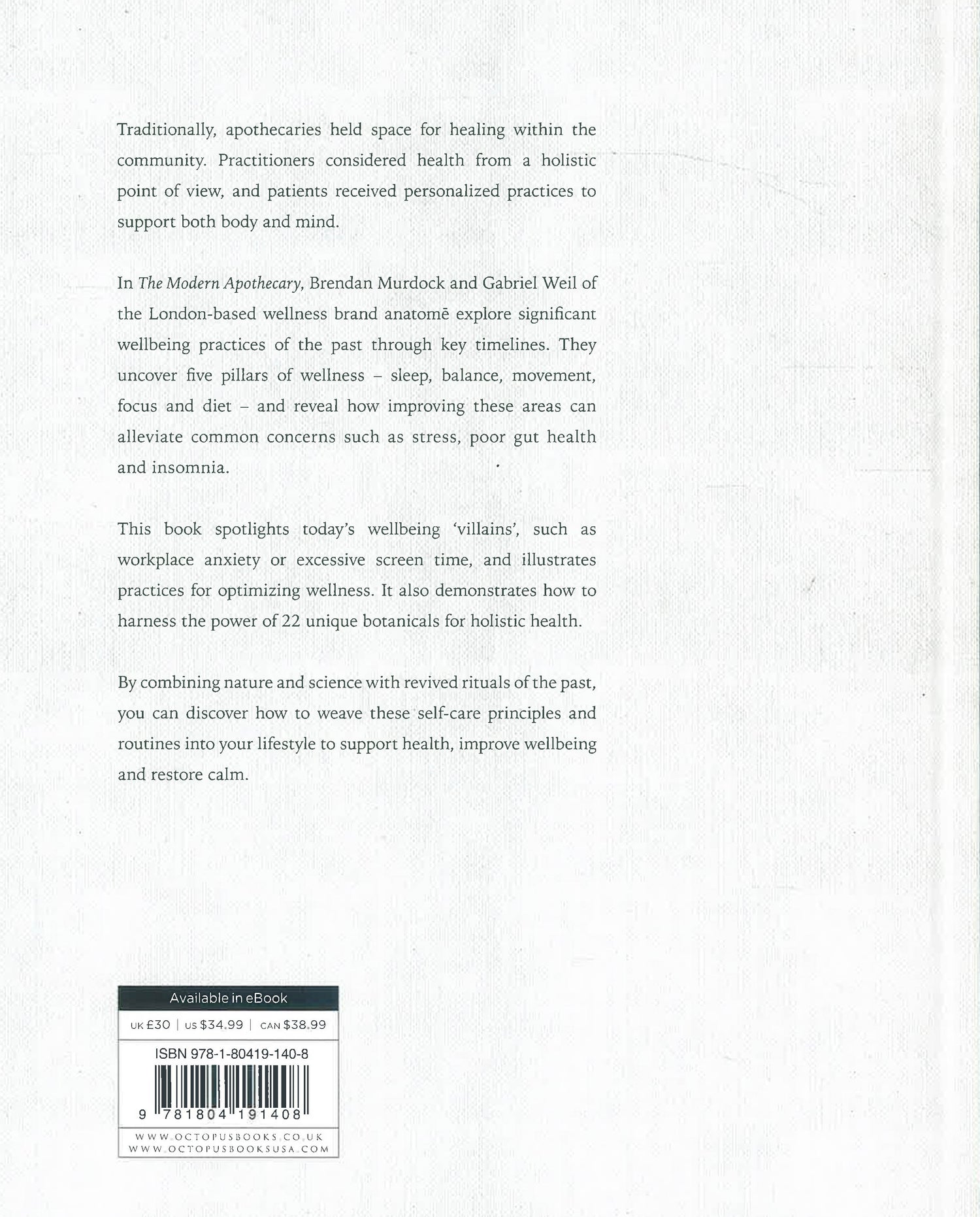 In The Modern Apothecary, Brendan Murdock and Gabriel Weil of the London-based wellness brand anatome explore significant wellbeing practices of the past through key timelines. They uncover five pillars of wellness - sleep, balance, movement, focus and diet - and reveal how improving these areas can alleviate common concerns such as stress, poor gut health and insomnia.