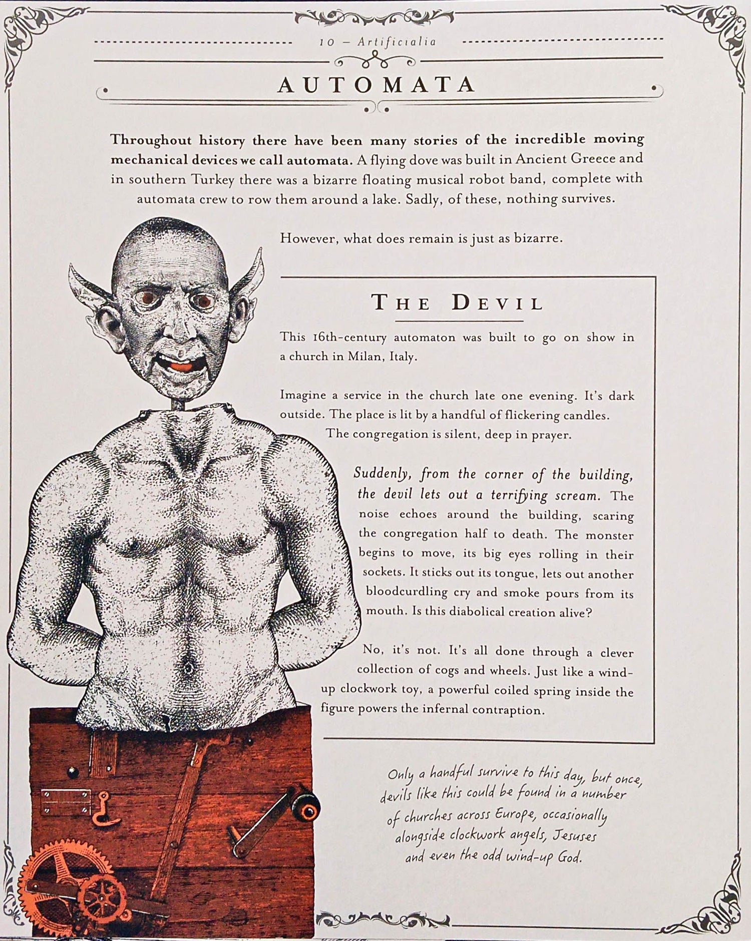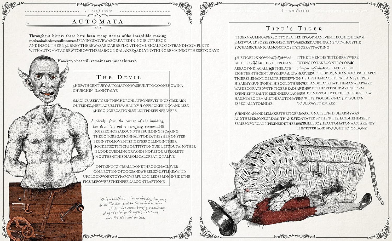 Uncover Artificalia (man-made objects), Naturalia (natural creatures and beings), Spiritualis (the spirit world), ScelereSupplicium (crime and punishment), Scientifica (scientific tools), Magicae (magical objects) and Morteum (skulls, bodies and more). Steampunk illustrator Celsius Pictor intricately illustrates McCreebor’s sketches, maps, records and photographs.