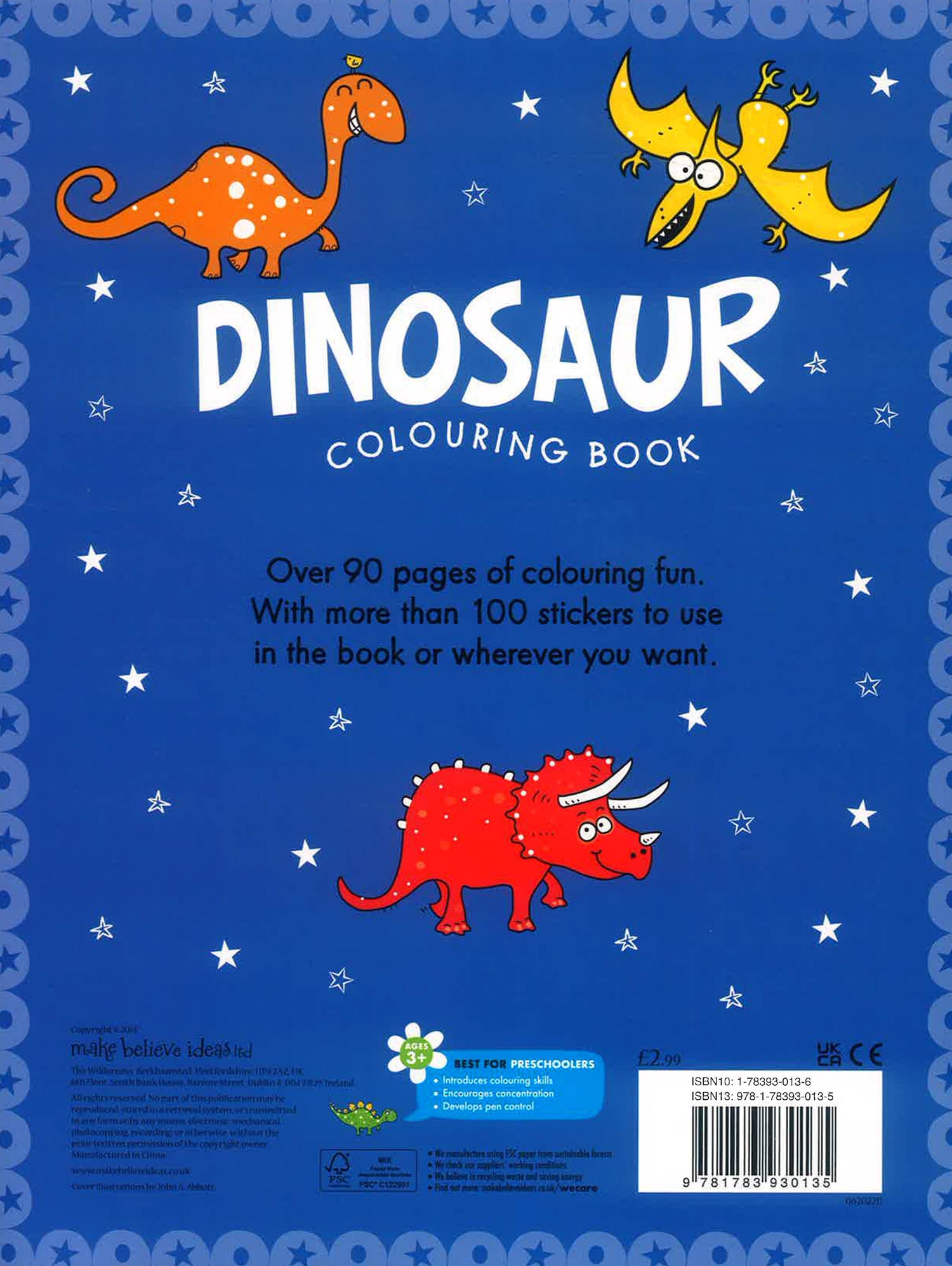 A fun dinosaur colouring book, featuring a page full of vibrant stickers for creative kids! This book is bursting with bold, imaginative outlines for children to shade. The cool stickers at the front can be used either in the book or anywhere else! Watch as children enjoy being artistic and have fun developing their motor skills. Bold, exciting outlines guide young artists and improve early motor skills! Over 100 stickers to use in the book or wherever you want! With four great themes to choose from!