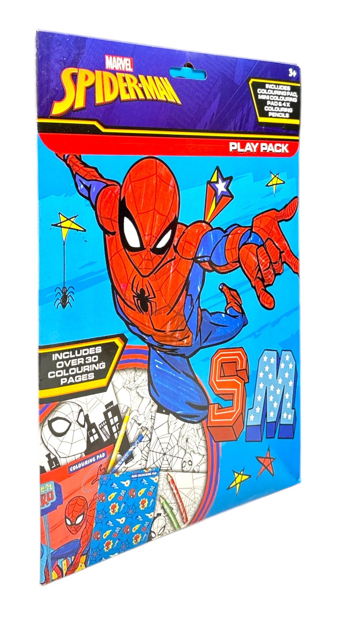 Spiderman Play Pack. Includes Colouring pad, Mini colouring pad and 4 colouring pencils.