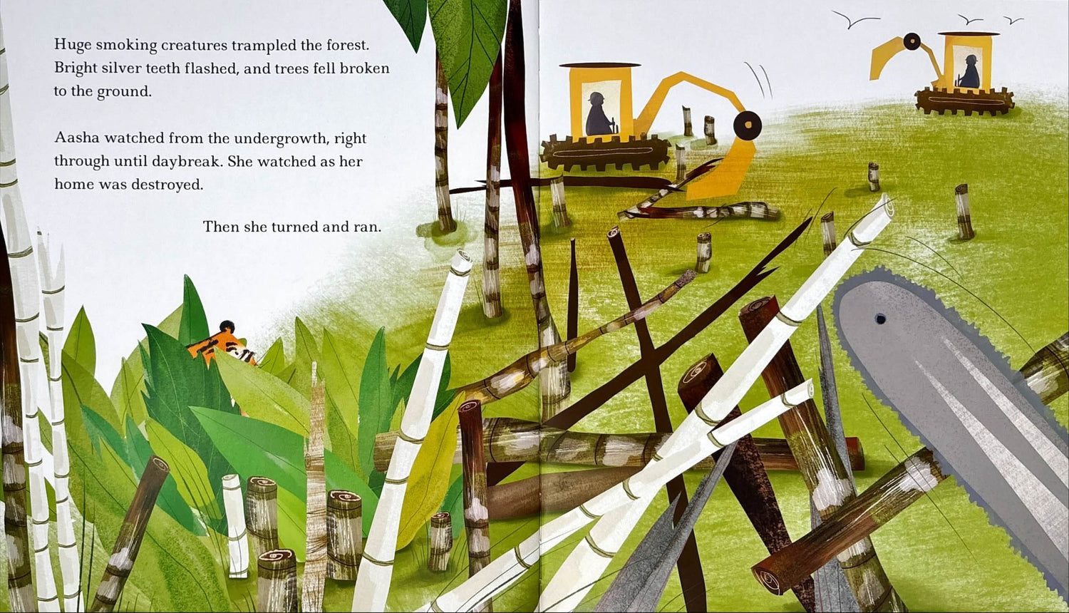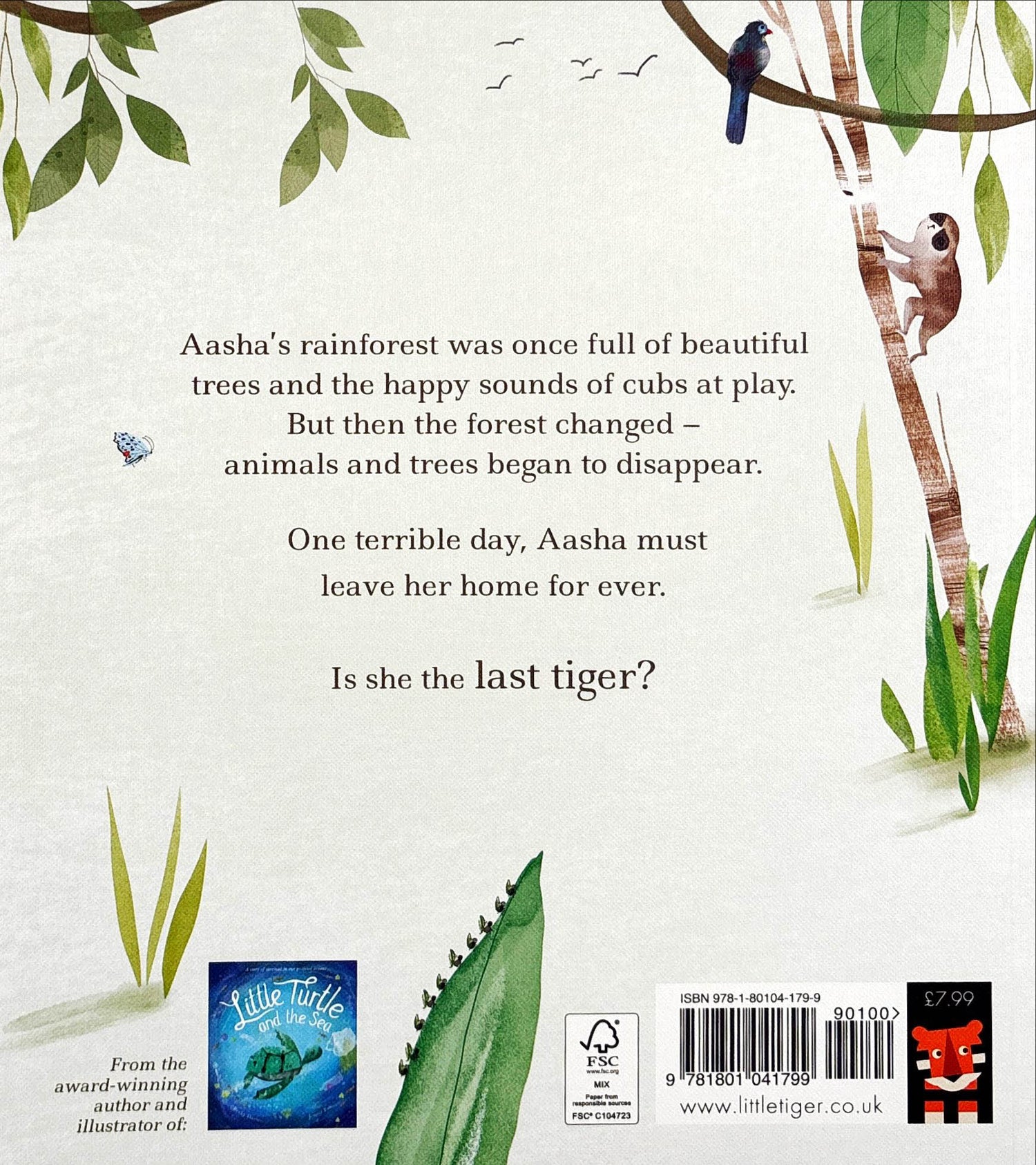 Aasha's rainforest is changing. Trees are being cut down, and worse still, tigers are disappearing. One terrible day, Aasha must leave her home for ever. Is she really the very last tiger?
