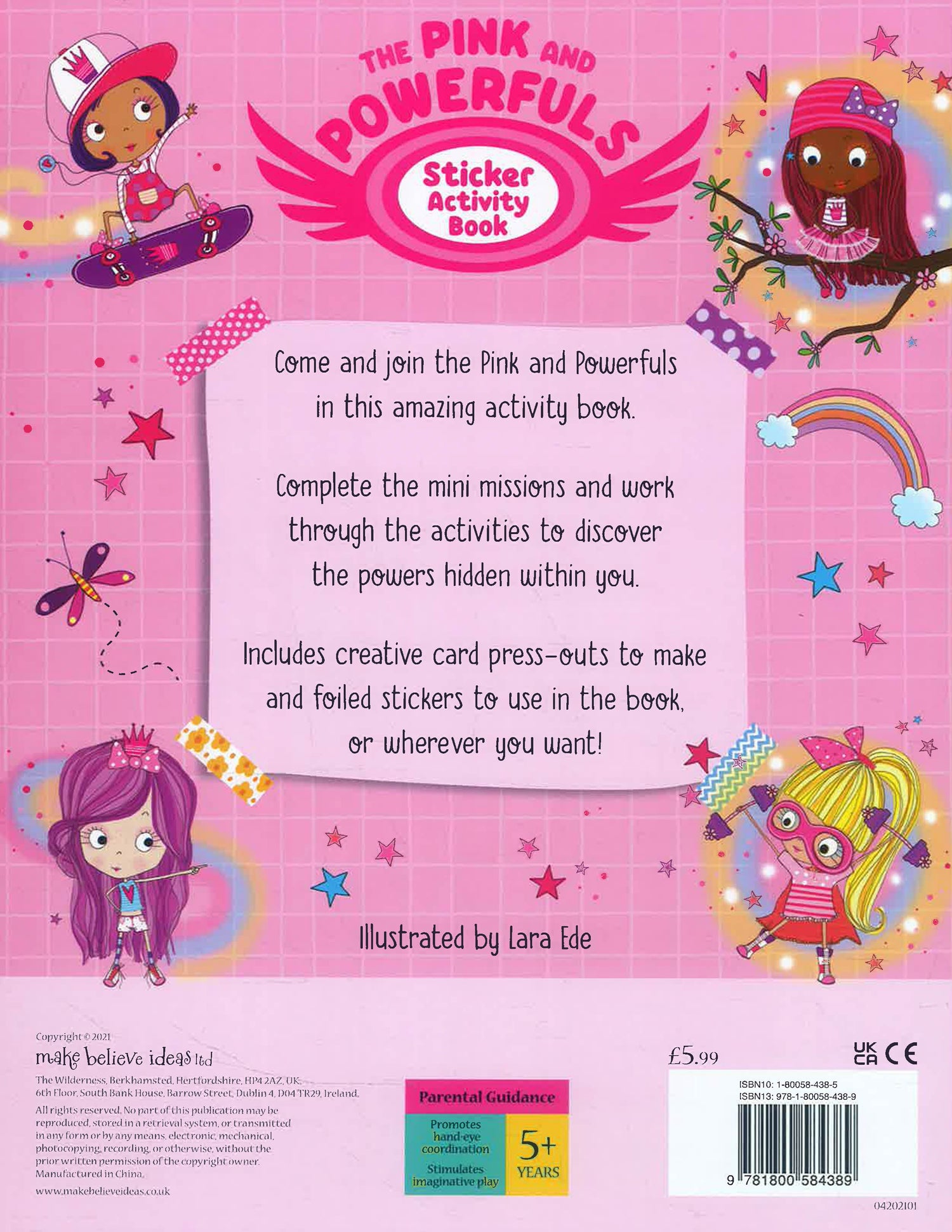 Join the Pink and Powerful girls as you work your way through this empowering activity book. My Pink and Powerfuls Sticker Activity Book is filled with colouring and drawing activities designed to build confidence. This book includes creative card press-outs and foiled stickers, encouraging children to feel empowered and creative. Includes 32 pp of activities With card press-outs Comes with foiled stickers