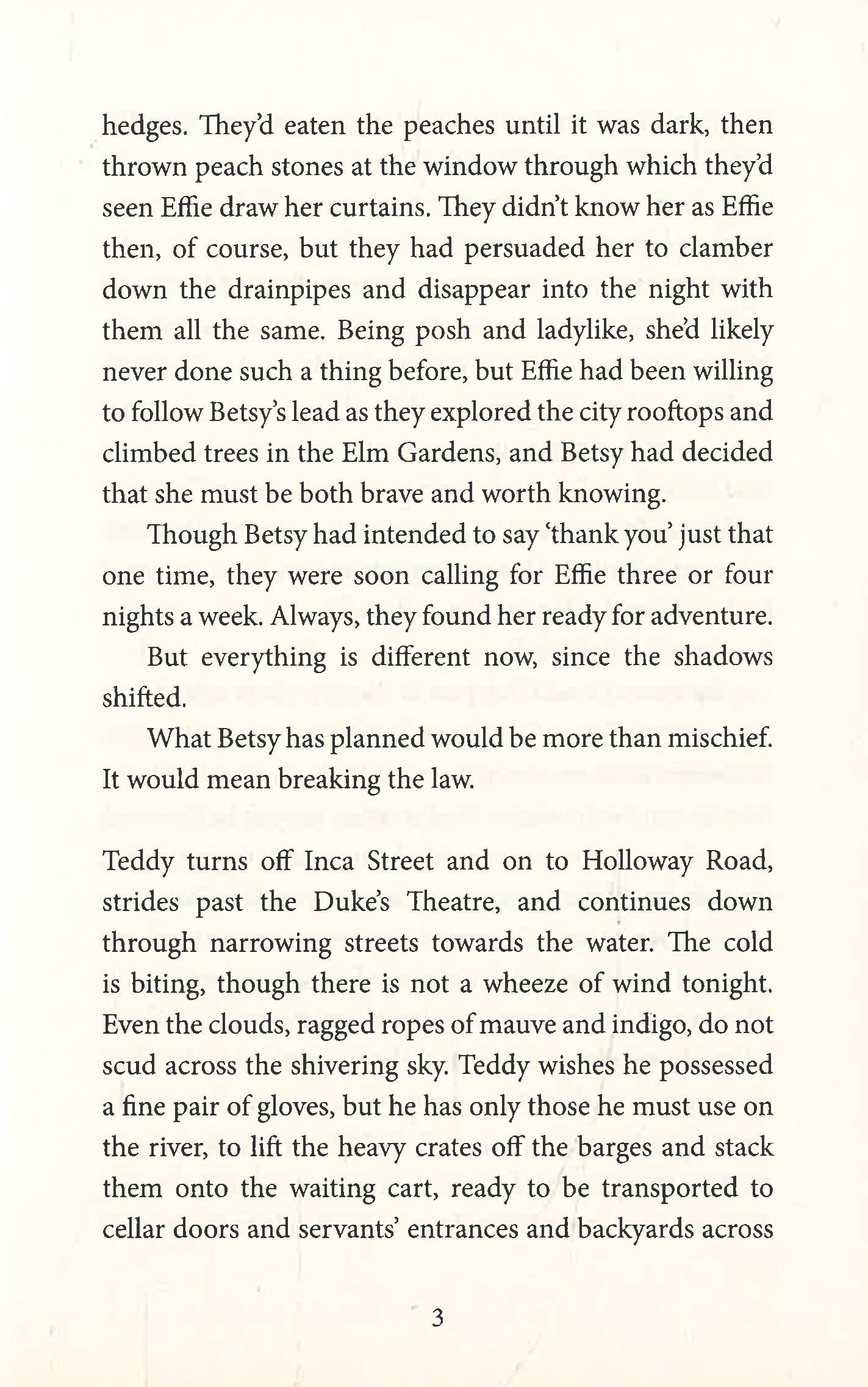 One year on from the day the shadows shifted - showing people their truest selves rather than just their shapes - best friends Teddy, Betsy and Effie plan to risk all and watch the winter sun rise over Copperwell, in defiance of the Shadow Order. But then the three shocked friends witness an event that sends them on a perilous voyage of discovery.