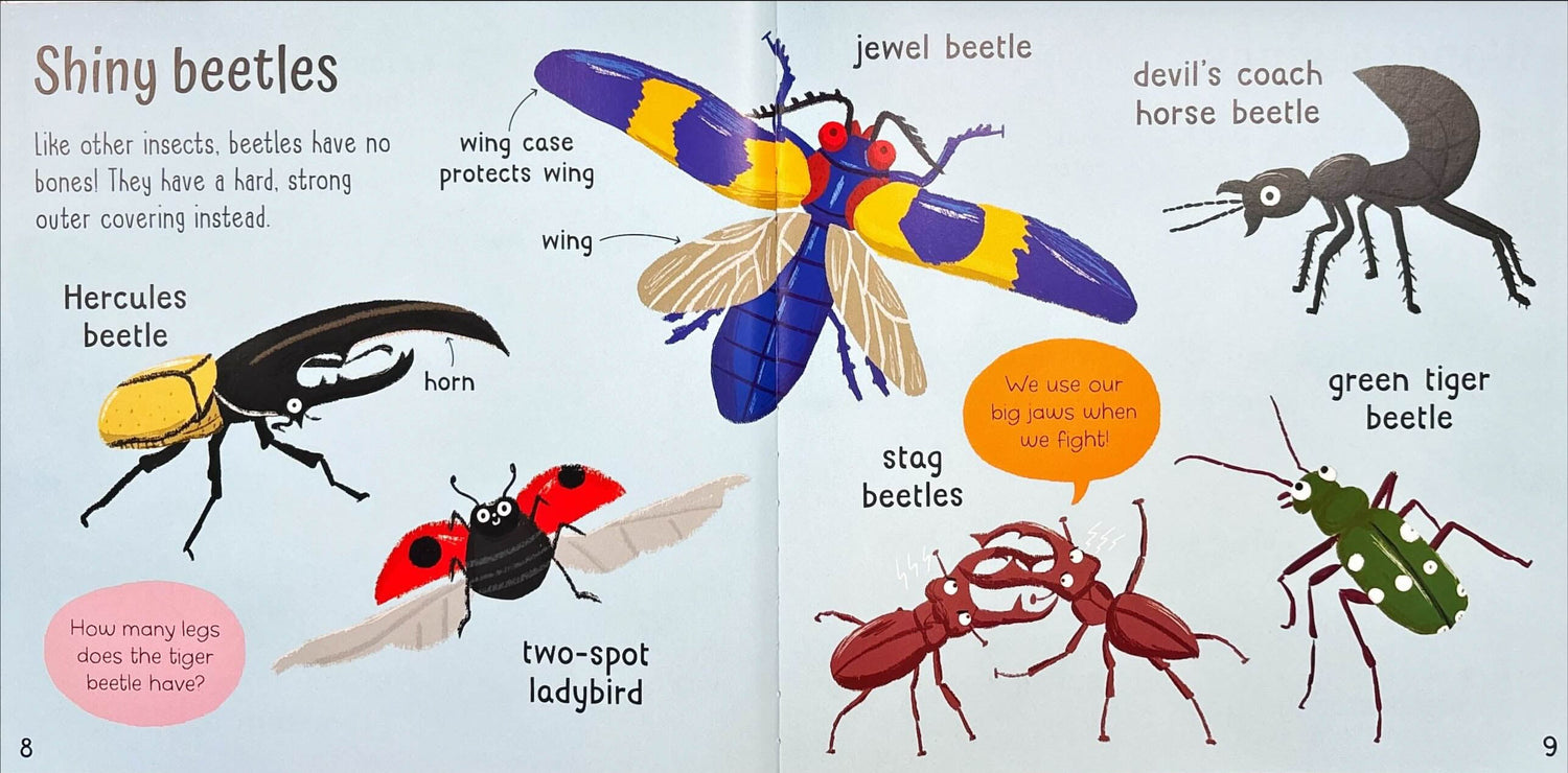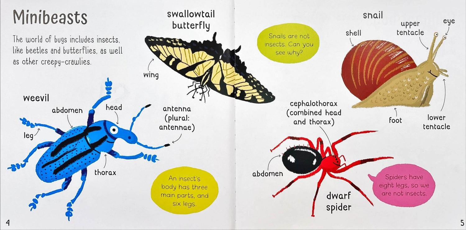 Packed with bright, engaging illustrations and words to say, little ones will love exploring the wonderful world of creepy crawlies. With lots to spot and talk about on every page, children are encouraged to practise their vocabulary skills as they learn the names of different bugs. Fun questions throughout explore numbers, colours and shapes.