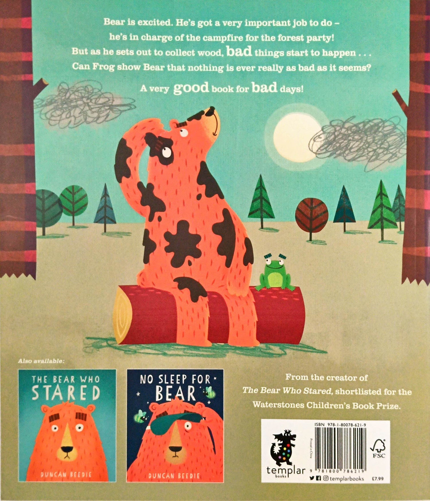 Bear is in charge of the campfire for the forest party. But as he sets out to collect wood, all sorts of BAD things happen: he gets a splinter in his paw, a big bump on his head and falls into a huge muddy puddle. The logs Beaver gives him are now soaking wet - how is Bear EVER going to make the campfire? It's a good job Bear's friend Frog is there to show him that things are never as bad as they seem . . .