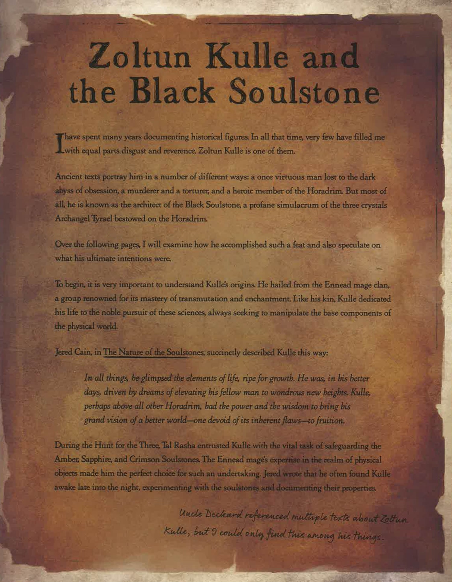From Blizzard Entertainment, the makers of critically acclaimed games such as Warcraft®, StarCraft®, and Diablo® comes this exciting companion edition to Diablo III: Book of Cain, giving fans an in-depth look into the mind of Tyrael. One of the most exciting and visceral action role-playing games in recent memory, Diablo® has become a worldwide gaming phenomenon. Diablo III: Book of Tyrael takes fans even further into the universe with a detailed and beautifully crafted artifact that focuses on the renowned champion Tyrael. As a former archangel of the High Heavens, he ranks among the most important and influential characters in the Diablo franchise. Here, in this illustrated and comprehensive tome, he reveals never-before-known secrets about the history of the world, the dark threats that yet face mankind, and his decision to join the ranks of humanity as a mortal. Featuring stunning original art throughout, this beautifully illustrated follow-up to Diablo III: Book of Cain will also feature letters from Leah and additional fragments of Cain’s writings, all curated by Tyrael as he weaves together a complex and fascinating story for the members of the Horadrim. Also features a fully removable illustration of the Leoric family and other influential characters from Old Tristram; including Deckard Cain, Prince Albrecht, Archbishop Lazarus, King Leoric, Prince Aidan, Queen Asylla, Leah, and Adria. This reversible image would demonstrate their normal appearances on one side, along with a representation of their dark fates on the other.