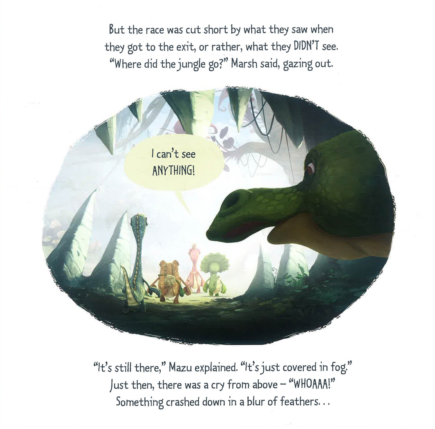 While Bill, Rocky, Tiny, Mazu and their friend Marsh are on the hunt for shiny glow weeds, a thick fog settles over Cretacia. UH OH - how will they ever find their way home? Anyone who knows the four friends knows that Mazu is an excellent leader and will keep the group away from any danger. But when Bill and Marsh get separated from the group, Bill must find the confidence in himself to brave the bad weather and lead them to safety. Will Bill face his fears and save the day? And will all the friends make it back to the den unscathed?