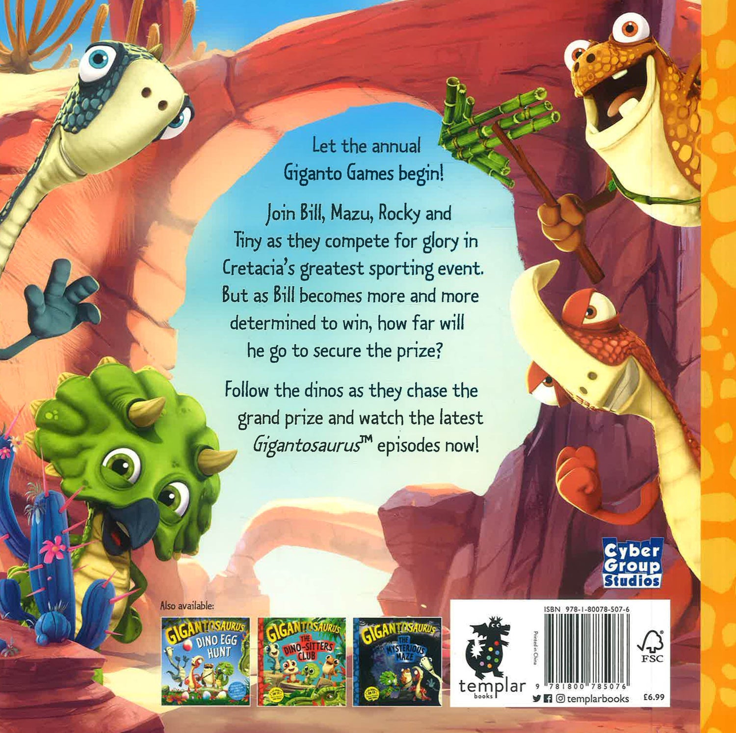 Join Bill, Mazu, Tiny and Rocky as they race, climb and compete for glory in Cretacia's greatest sporting event: the Giganto Games! The prize up for grabs is a delicious, glistening golden pineapple - the tastiest you've ever seen. But as Bill becomes more and more determined to win, how far will he go to secure the prize? Will his selfish antics put his friends in danger? And perhaps good friends are the best prize of all. . .