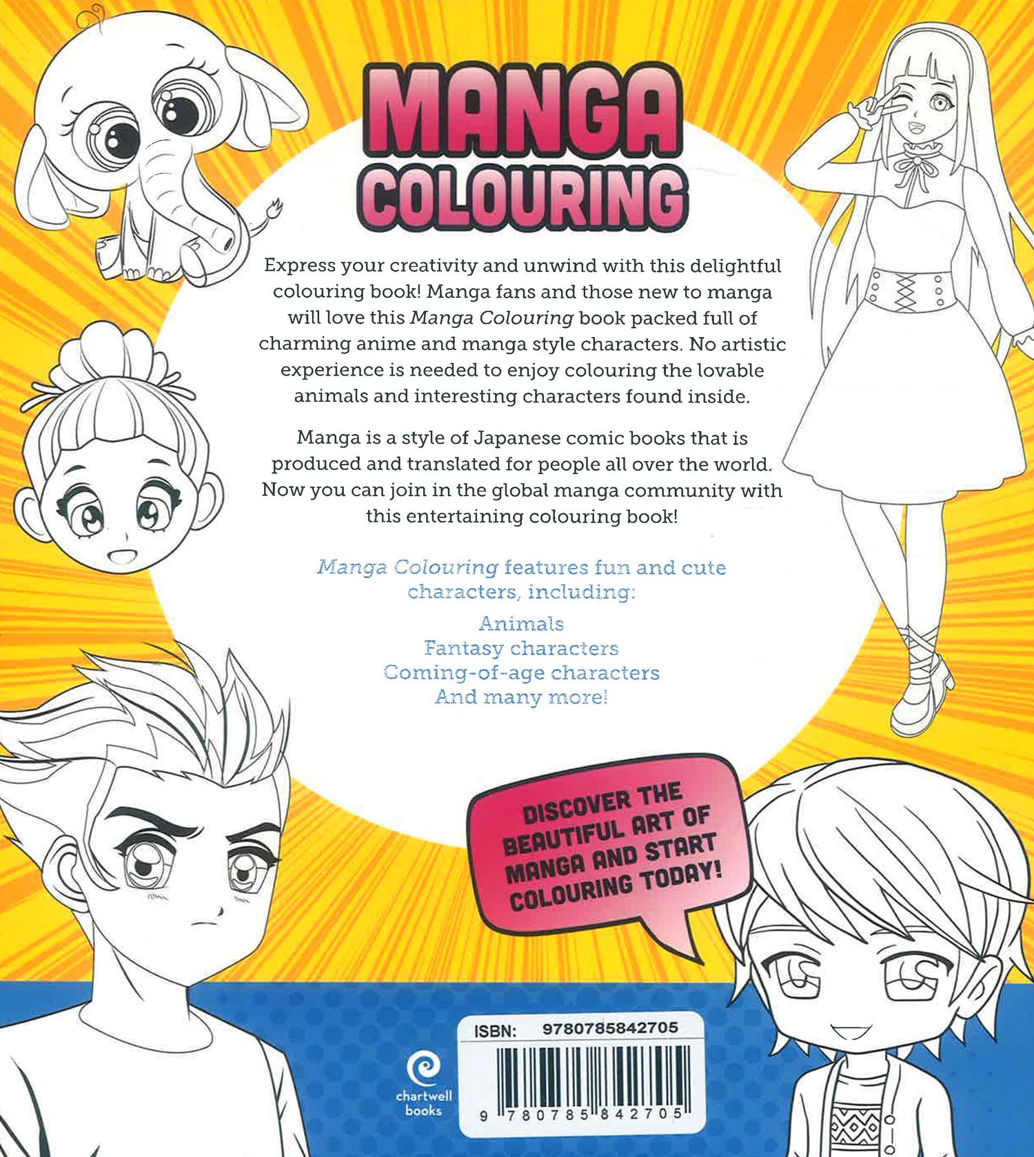 Express your creativity and unwind by colouring manga characters! Whether you are new to manga or a longtime fan, you will love this colouring book packed full of charming manga illustrations.