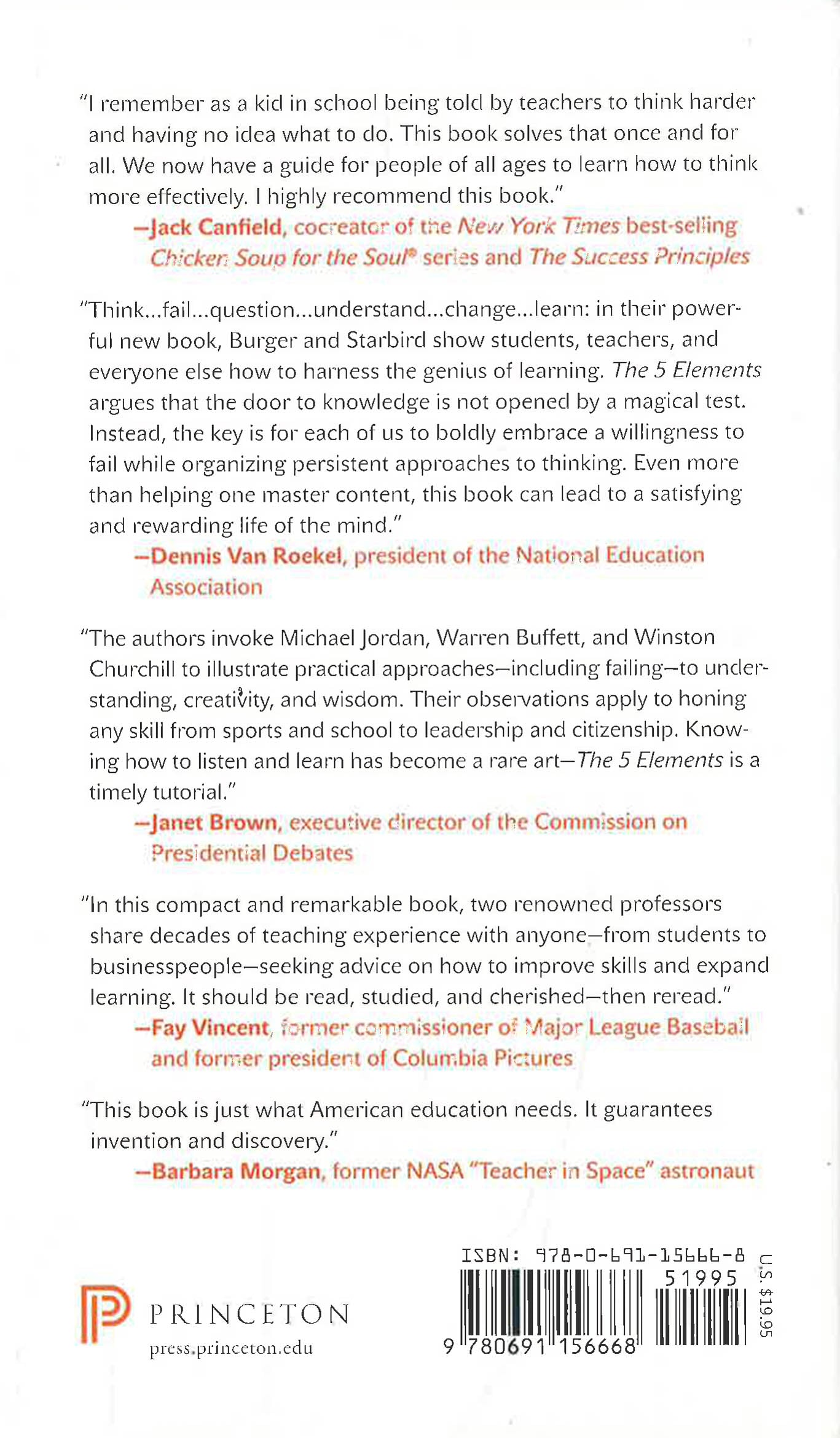 The 5 Elements of Effective Thinking presents practical, lively, and inspiring ways for you to become more successful through better thinking. The idea is simple: You can learn how to think far better by adopting specific strategies. Brilliant people aren't a special breed--they just use their minds differently. By using the straightforward and thought-provoking techniques in The 5 Elements of Effective Thinking, you will regularly find imaginative solutions to difficult challenges, and you will discover new ways of looking at your world and yourself--revealing previously hidden opportunities. The book offers real-life stories, explicit action items, and concrete methods that allow you to attain a deeper understanding of any issue, exploit the power of failure as a step toward success, develop a habit of creating probing questions, see the world of ideas as an ever-flowing stream of thought, and embrace the uplifting reality that we are all capable of change. No matter who you are, the practical mind-sets introduced in the book will empower you to realize any goal in a more creative, intelligent, and effective manner. Filled with engaging examples that unlock truths about thinking in every walk of life, The 5 Elements of Effective Thinking is written for all who want to reach their fullest potential--including students, parents, teachers, businesspeople, professionals, athletes, artists, leaders, and lifelong learners. Whenever you are stuck, need a new idea, or want to learn and grow, The 5 Elements of Effective Thinking will inspire and guide you on your way. To share thinking stories, go to: http://5elementsofthinking.wordpress.com