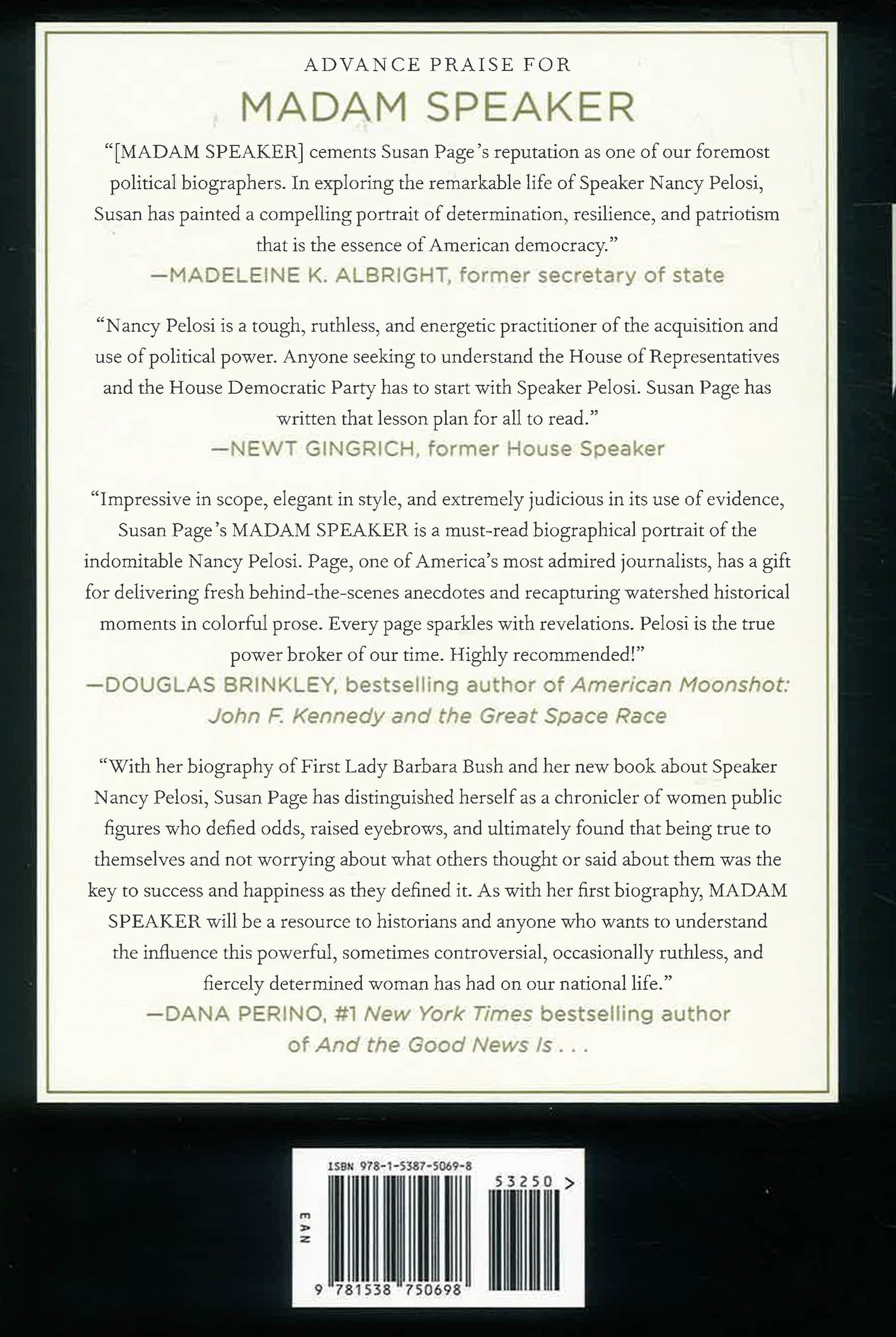 Featuring more than 150 exclusive interviews with those who know her best--and a series of in-depth, news-making interviews with Pelosi herself--MADAM SPEAKER is unprecedented in the scope of its exploration of Nancy Pelosi's remarkable life and of her indelible impact on American politics.