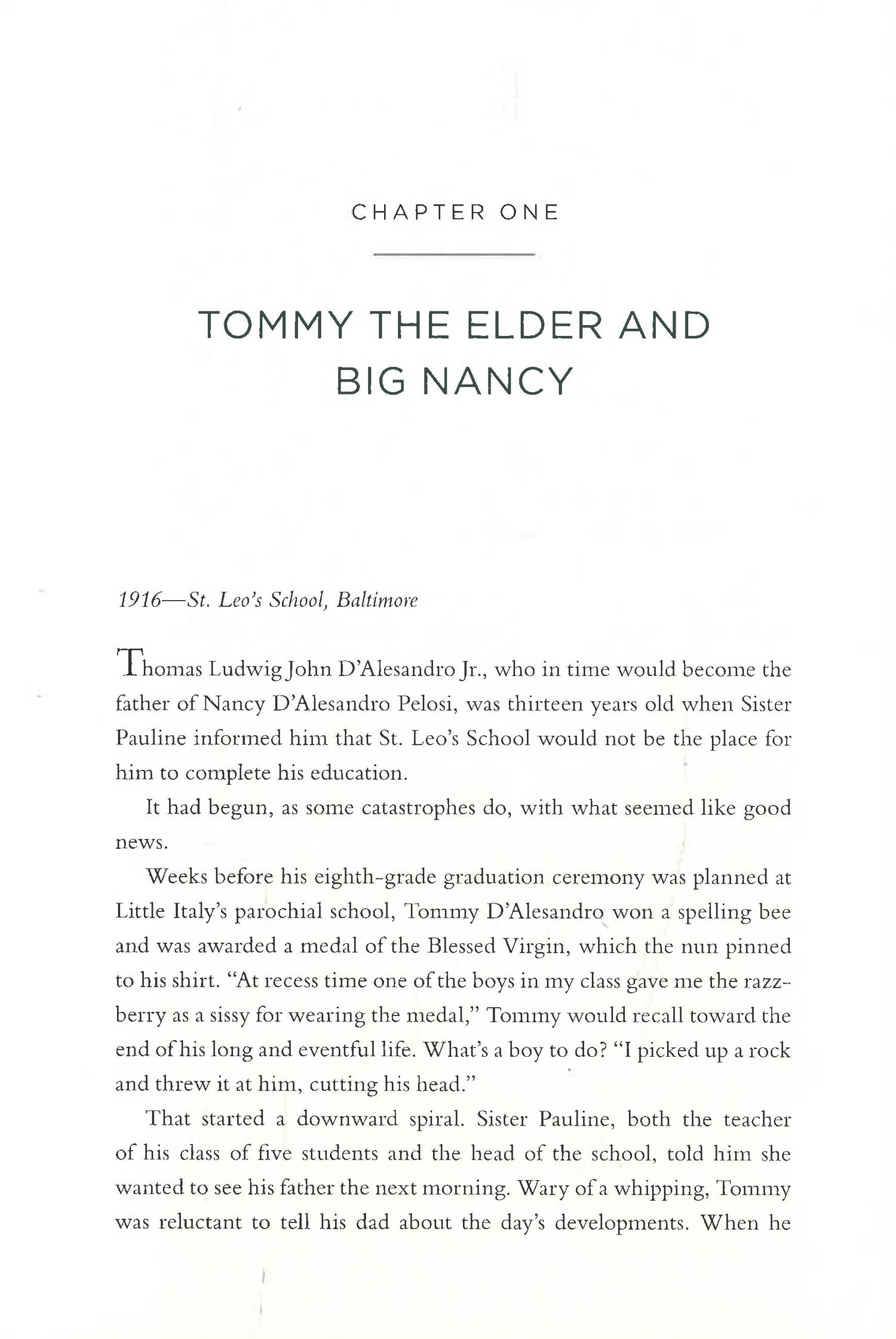 Before she was Nancy Pelosi, she was Nancy D'Alesandro. Her father was a big-city mayor and her mother his political organizer; when she encouraged her young daughter to become a nun, Nancy told her mother that being a priest sounded more appealing. She didn't begin running for office until she was forty-six years old, her five children mostly out of the nest. With that, she found her calling.
