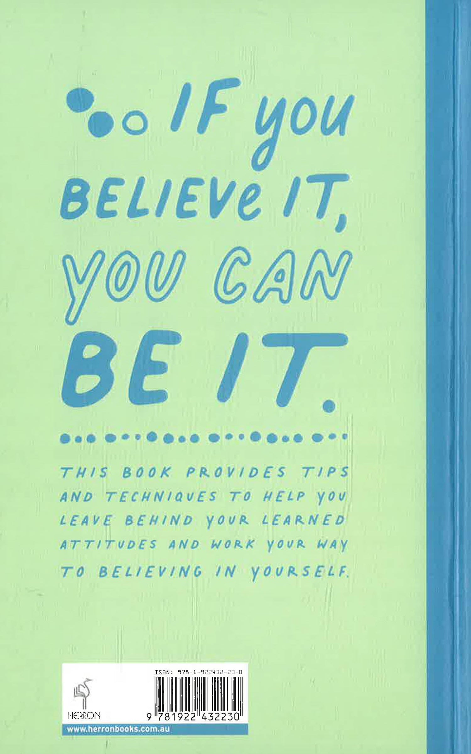 If you believe it, you can be it. This book provides tips and techniques to help you leave behind your learned attitudes and work your way to believing in yourself.