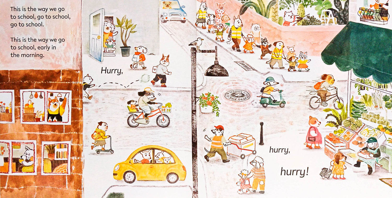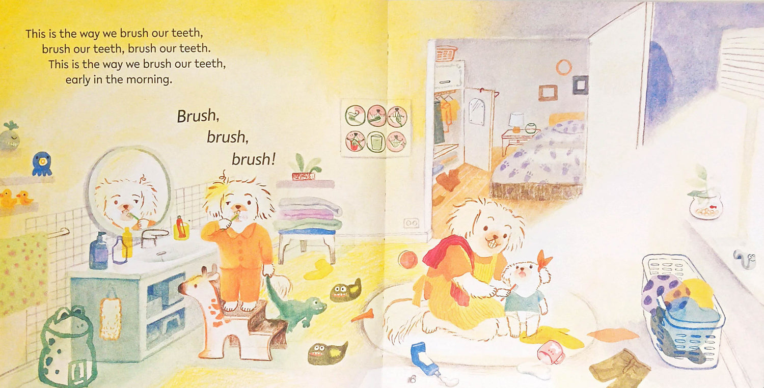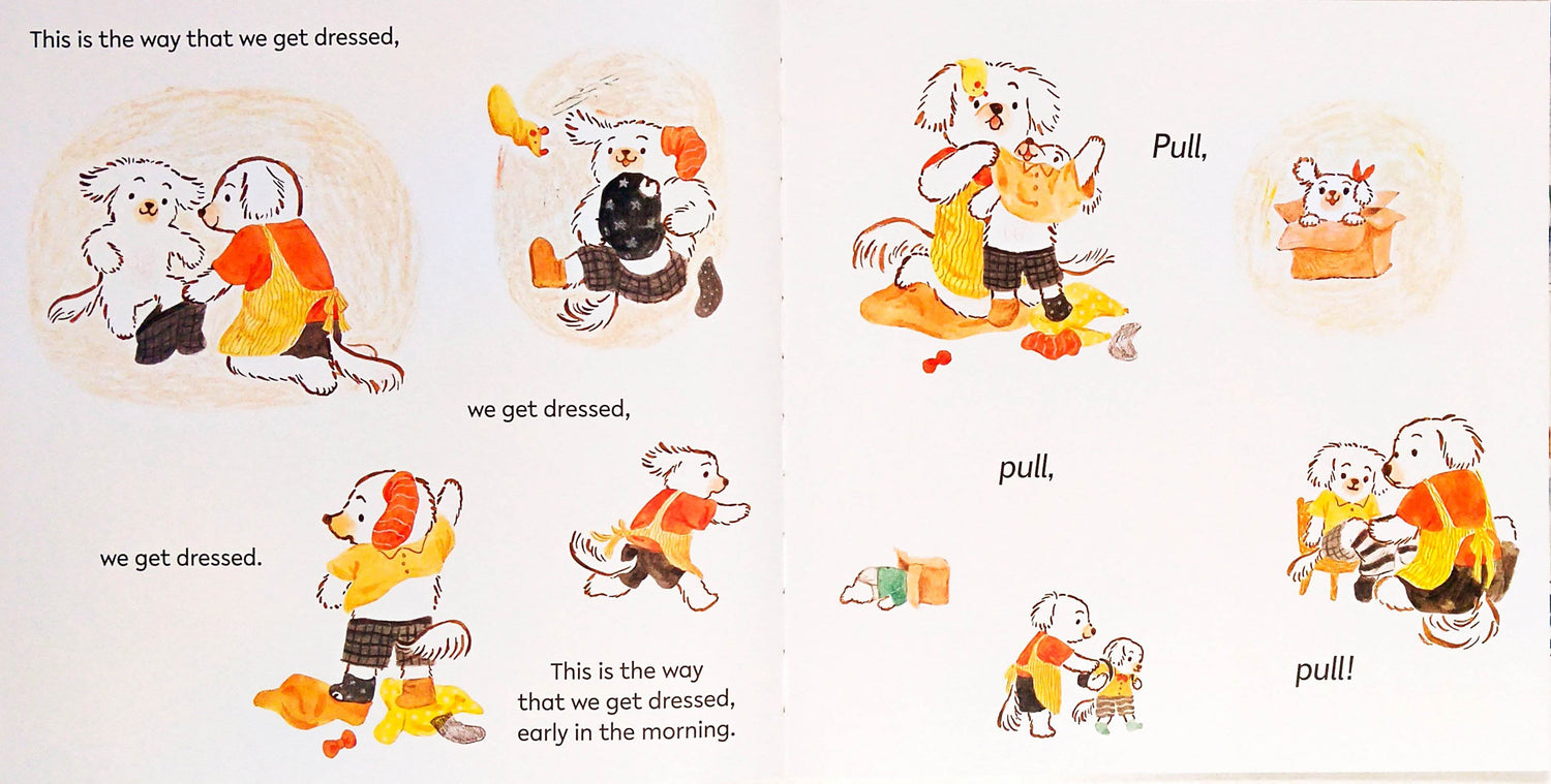 Sing along to the popular rhyme, set to 'Here We Go Round the Mulberry Bush', to discover what the residents of Dogtown get up to during their day in this delightful book of first experiences.