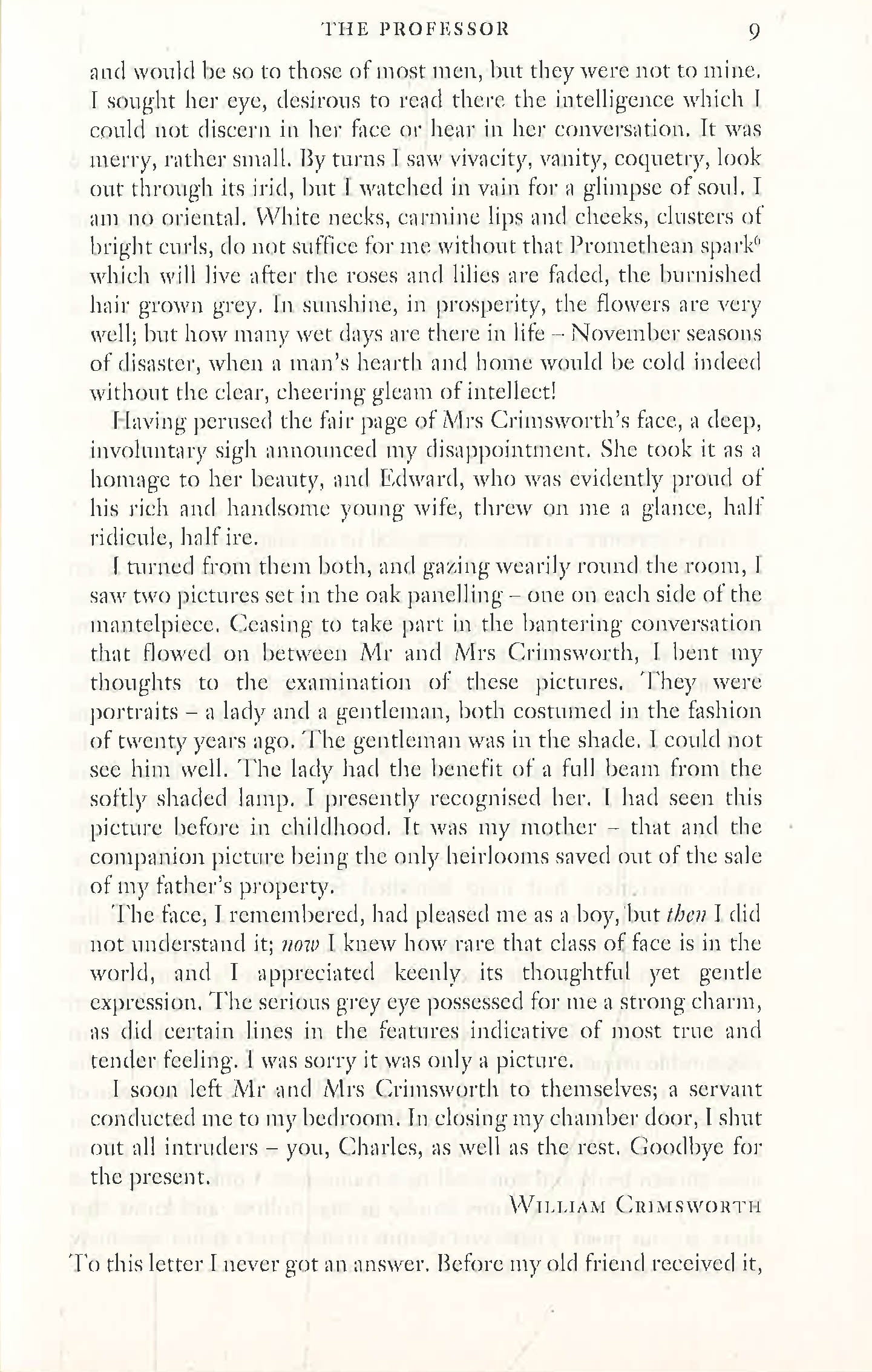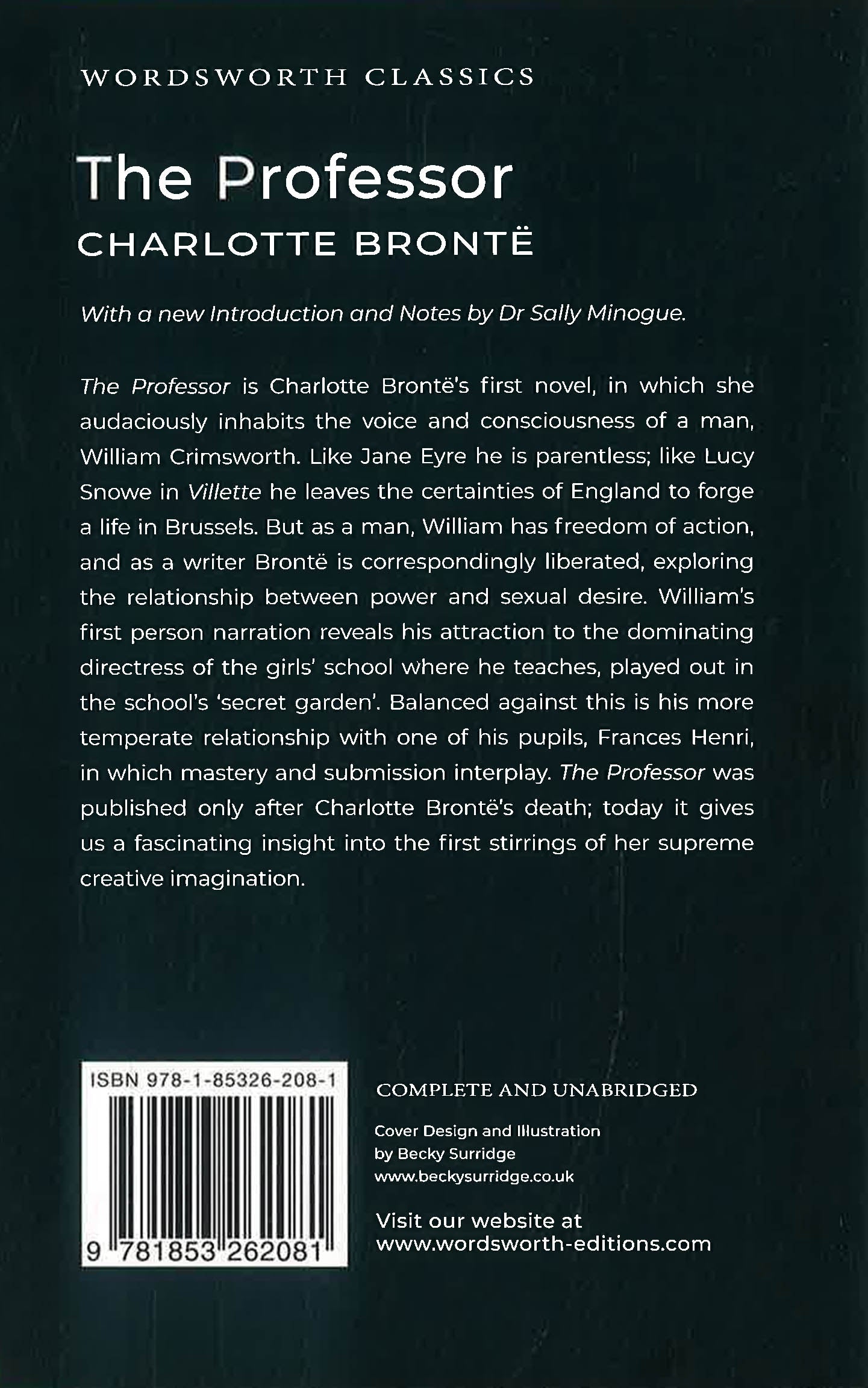 The Professor is Charlotte Bronte's first novel, in which she audaciously inhabits the voice and consciousness of a man, William Crimsworth