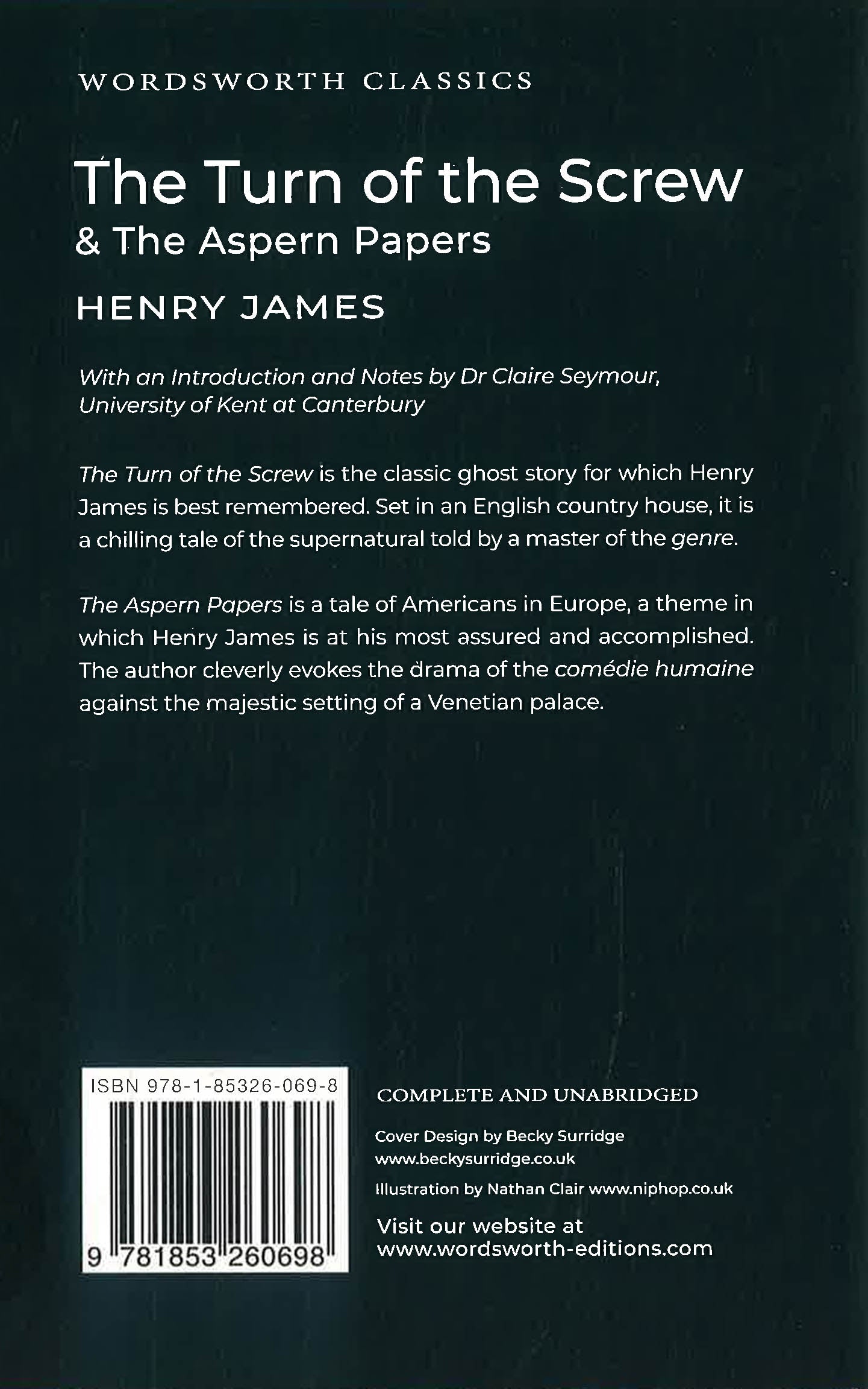 With an Introduction and Notes by Dr Claire Seymour, University of Kent at Canterbury. The Turn of the Screw is the classic ghost story for which James is most remembered. Set in a country house, it is a chilling tale of the supernatural told by a master of the genre. The Aspern Papers is a tale of Americans in Europe, a theme in which Henry James is at his most assured and accomplished. The author cleverly evokes the drama of comedie humaine against the settings of a Venetian palace.