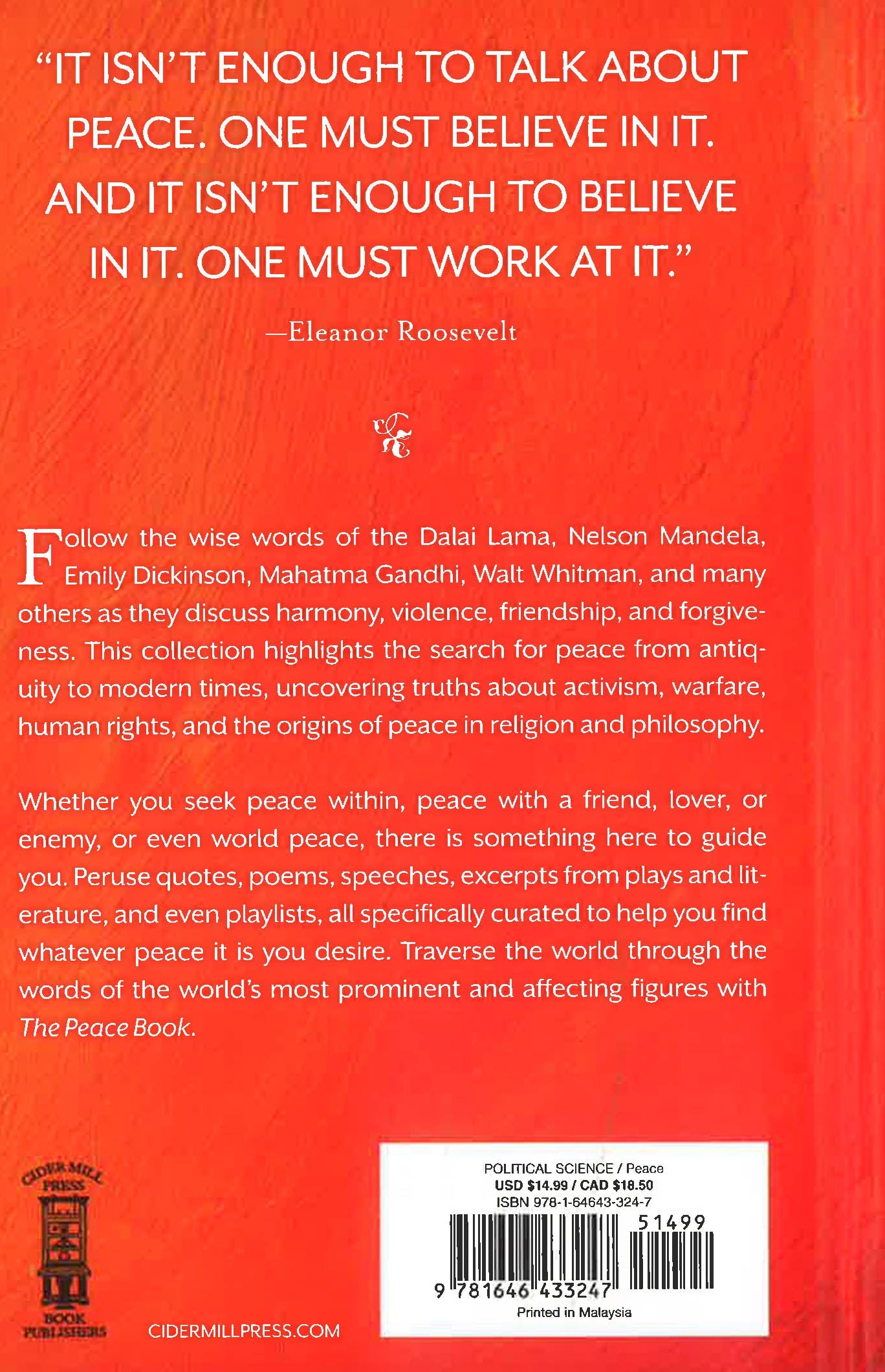 Follow the wise words of Nelson Mandela, Dalai Lama, Franklin D. Roosevelt, Mahatma Gandhi, Elizabeth Cady Stanton, and many others through literary excerpts, quotes, and anecdotes as they discuss harmony, violence, friendship, and hostility throughout history. This collection of writings highlights the search for peace from antiquity to modern times. This selection includes: