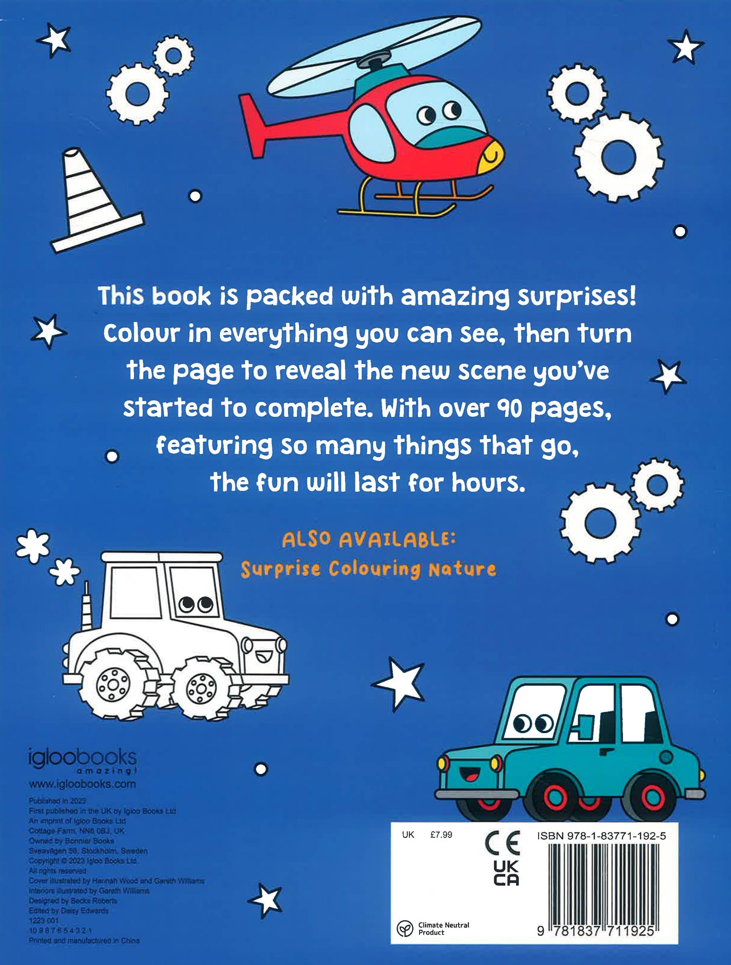 This book is packed with amazing surprises! Colour in everything you can see, then turn the page to reveal the new scene you've started to complete. With over 90 pages, featuring so many things that go, the fun will last for hours.