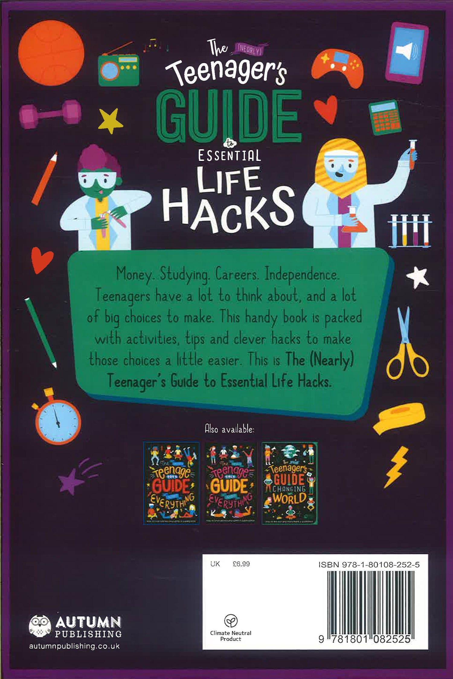 A helpful guide filled with the topics that really matter to today''s tweens and teens! Money. Studying. Careers. Independence. Teenagers have a lot to think about, and a lot of big choices to make. This handy book is packed with activities, tips and clever hacks to make those choices a little easier. This is The (Nearly) Teenager''s Guide to Essential Life Hacks.Inside you''ll find advice on:- Study skills- Citizenship- Dealing with money- Careers and life goals- Dealing with failure- Improving your wellbeing- Online safety- And many, many more topics!