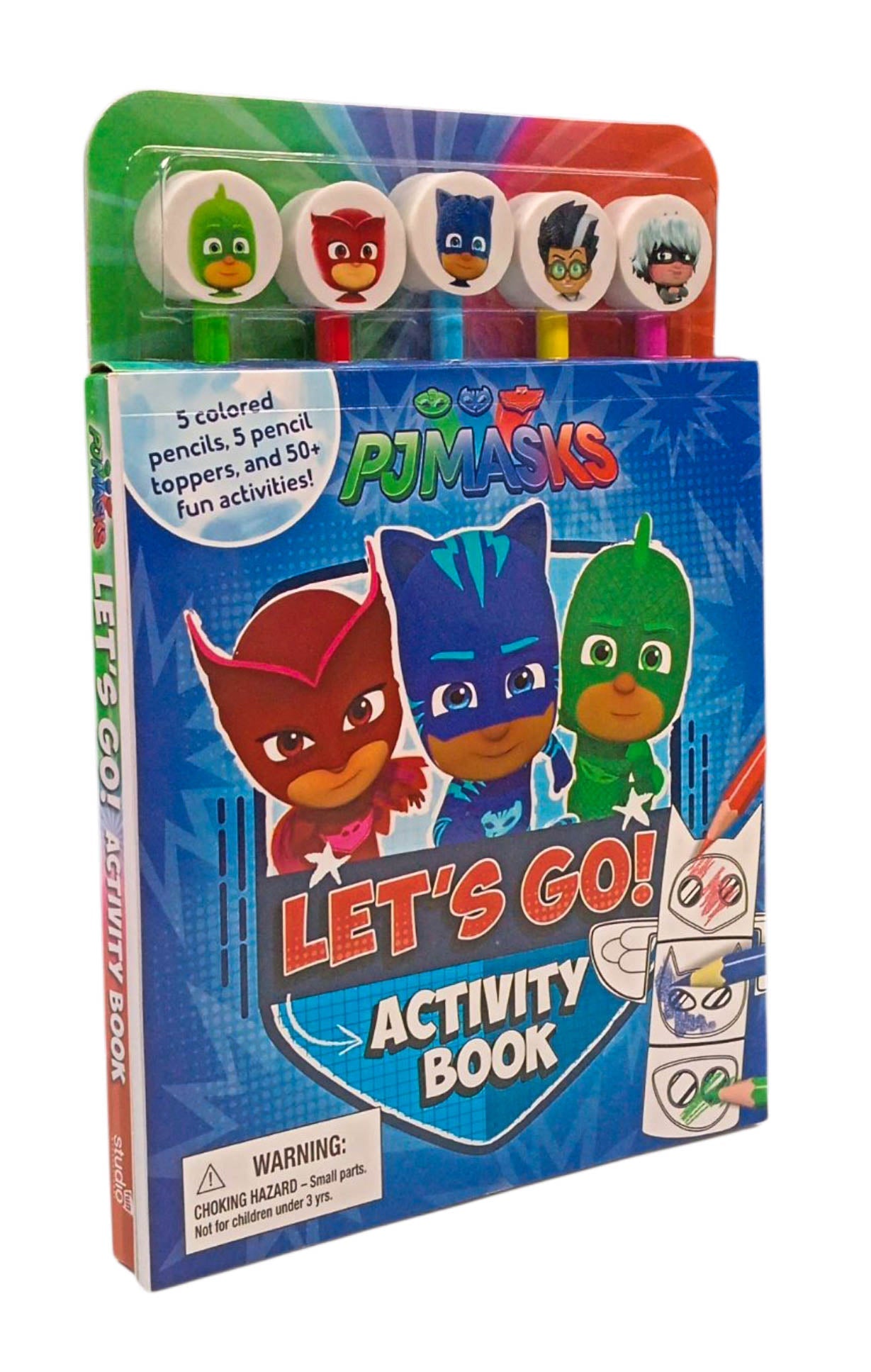 Use the 5 colored pencils with erasers featuring everyone's favorite heroes and villains to complete 64 pages of PJ Masks activities!