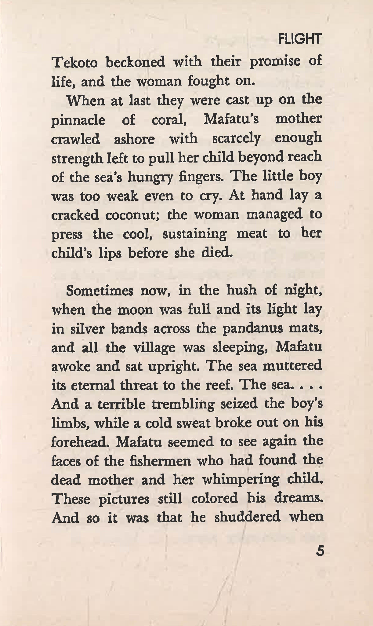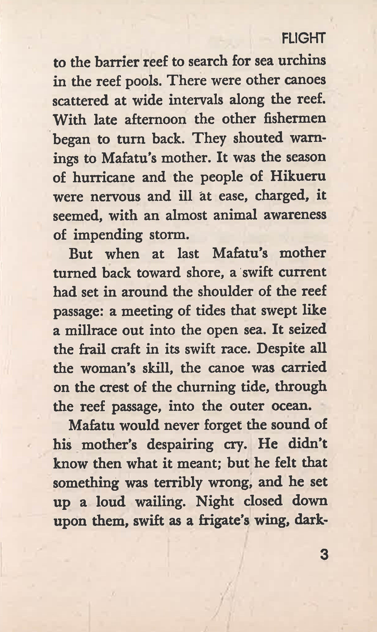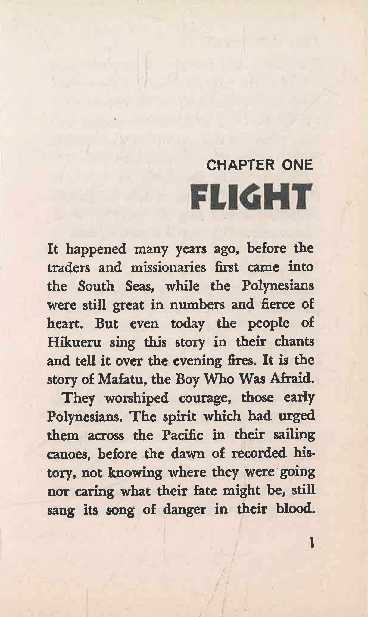 Mafatu has been afraid of the sea for as long as he can remember. Though his father is the Great Chief of Hikueru - an island whose seafaring people worship courage - Mafatu feels like an outsider. All his life he has been teased, taunted, and even blamed for storms on the sea.