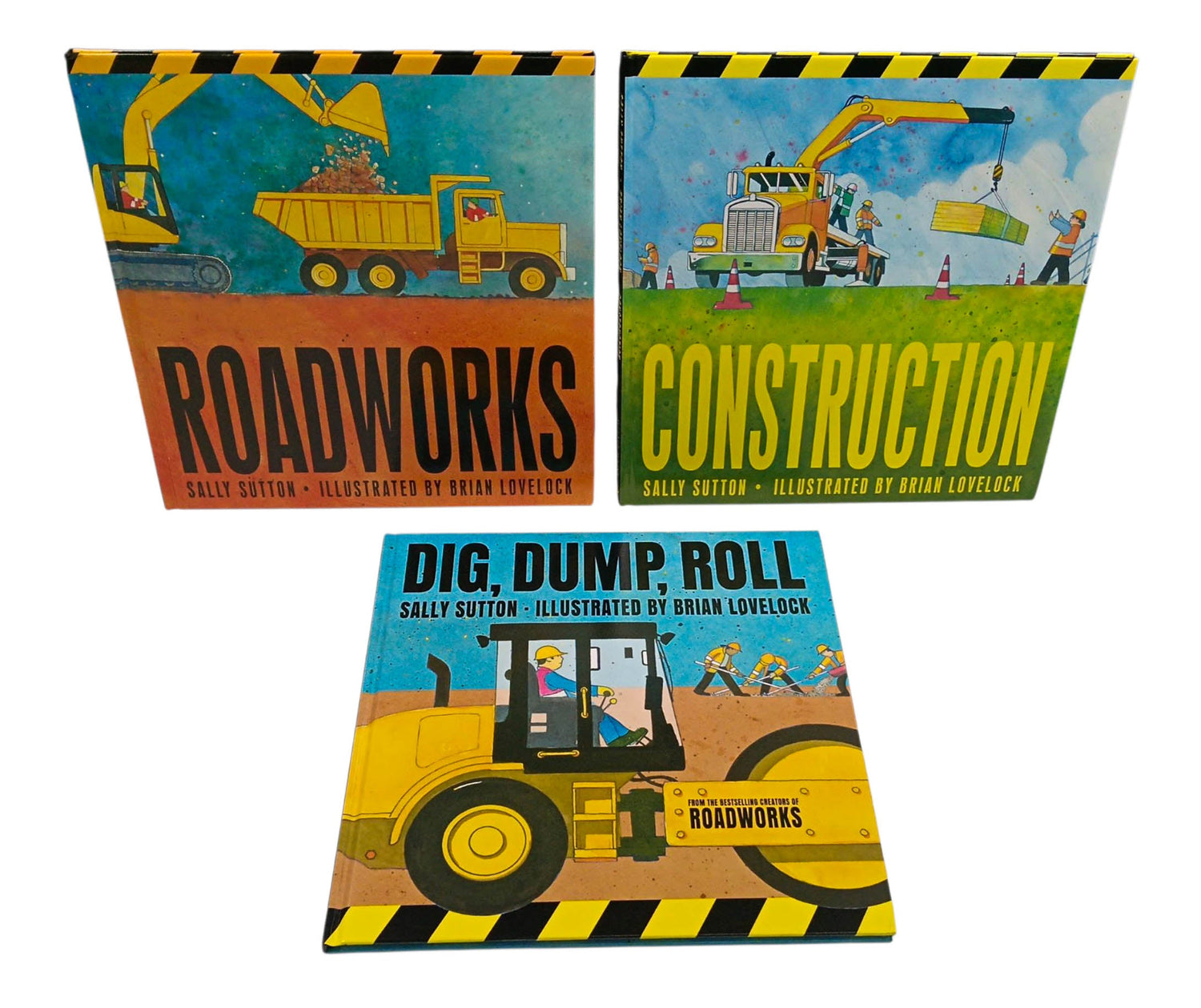 A collection of three of the most popular Sutton and Lovelock hardbacks for pre-school fans of machines and building sites, including Construction, Dig, Dump, Roll and Roadworks!