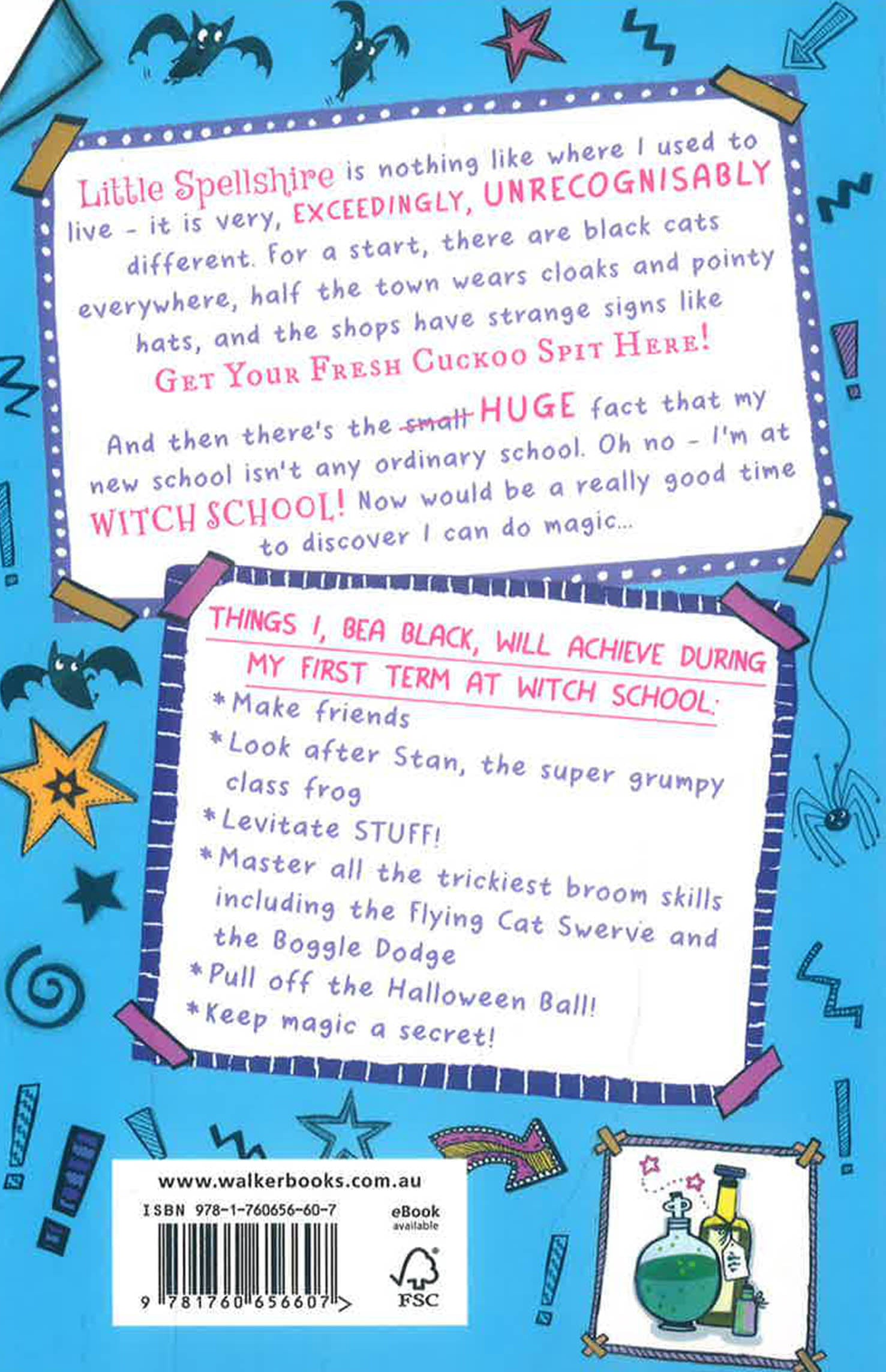 Bea Black has just moved to Little Spellshire, a town with a magical secret. When her dad accidentally enrols her at the local witch school, she has to get to grips with some interesting new classes, like, NOW! Also on her to do list? Make friends, look after the grumpy class frog AND do everything humanly magically possible to stay on a broom…