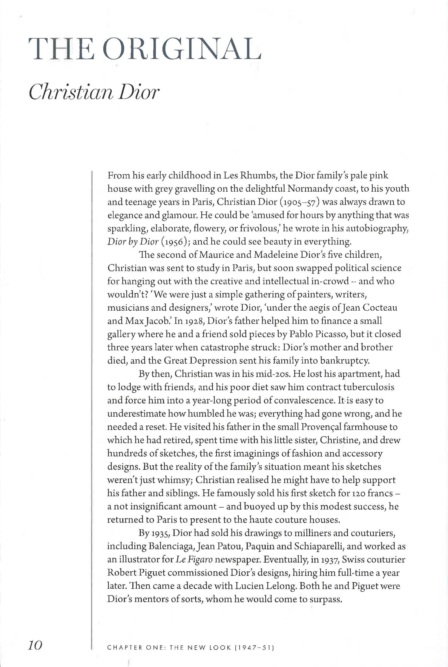 Dior redefined what fashion looked like in the post-war age and demanded glamour, femininity and excess to be the order of the day. His vision for seriously structured corsets tapering to dramatically full skirts with pleats for days earned the title 'The New Look', and it really was. His garments spoke of hope and beauty and were crafted with the utmost attention to detail. This beautifully illustrated book charts not only the work of the great man himself, but also those who stood at the helm after him, including the inimitable Yves Saint Laurent and John Galliano.