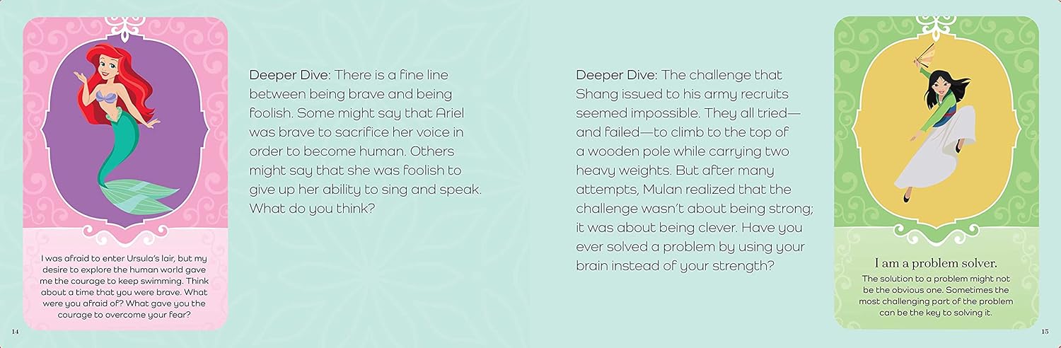 Start the day focused on mindfulness, inner beauty, and positive thinking with 52 beautifully-illustrated cards in the Disney Princess Affirmation Cards set.