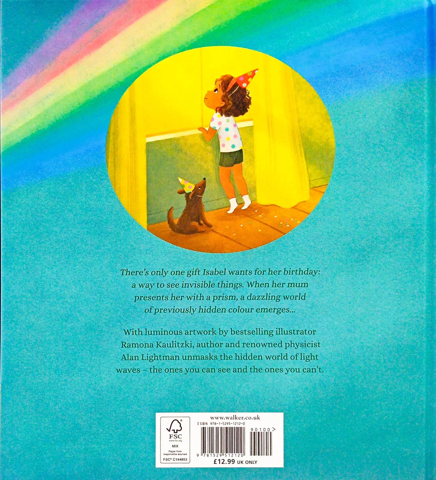 There’s only one gift Isabel wants for her birthday: a way to see invisible things. She can hardly think of anything else until the day of her party arrives! Unwrapping a big box, Isabel finds a surprise inside – a glass prism – and a dazzling world of previously invisible colour emerges, lighting up the room around her. What else could be out there, waiting for her eyes to discover?