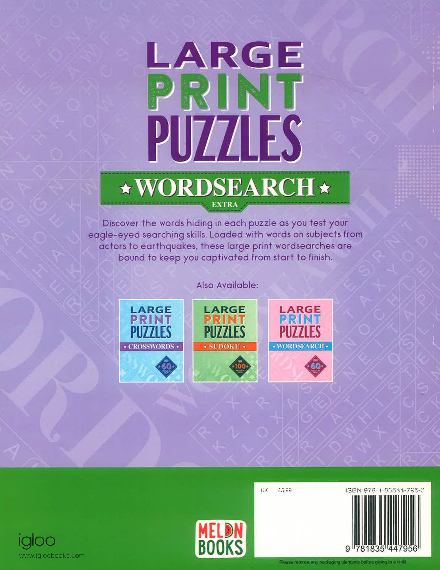 Loaded with words on subjects from actors to earthquakes, these large print wordsearches are bound to keep you captivated from start to finish.