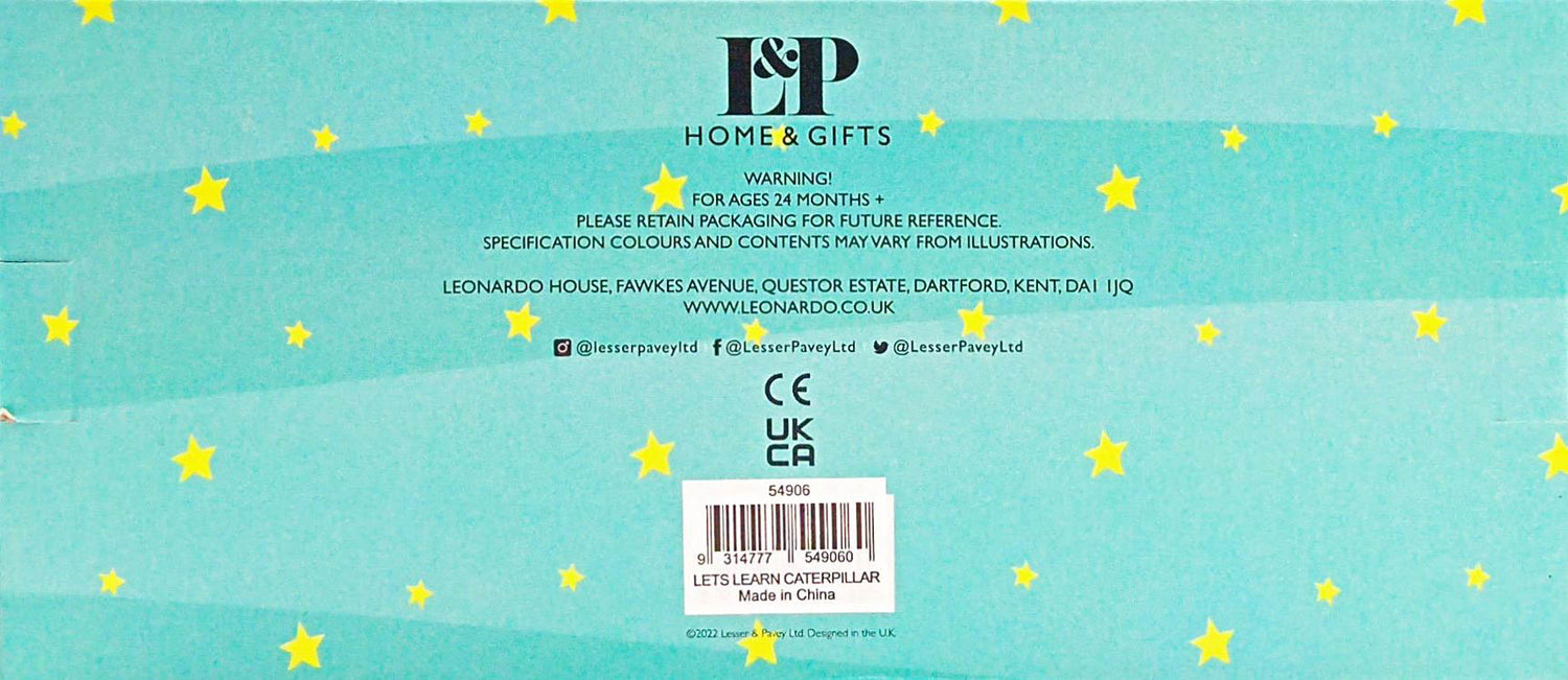 Let’s Learn Caterpillar Puzzle is a fun, educational toy, likely aimed at helping children develop basic cognitive skills while learning about shapes, colours, and possibly even counting or the life cycle of a caterpillar.