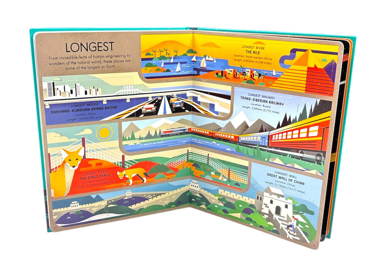 Have you ever wondered… What was the biggest dinosaur? What’s the fastest plane ever built? Where’s the tallest waterfall in the world? Lift the flaps to climb the tallest mountain, explore the depths of the ocean, peer into our solar system, and more. With links to specially selected websites for videos, photos and virtual tours.