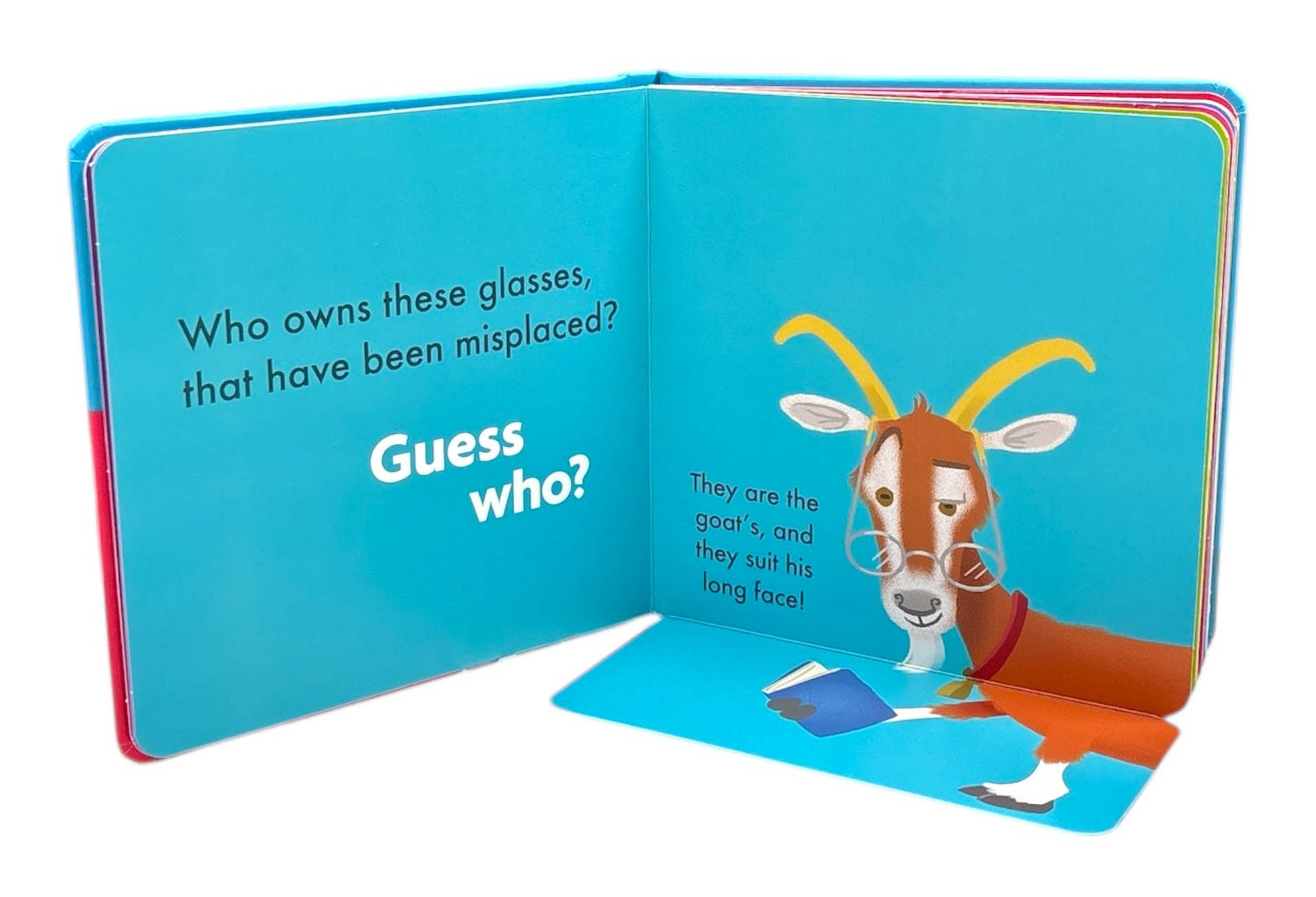 You'll never guess who is hiding underneath the flaps in this fun book.