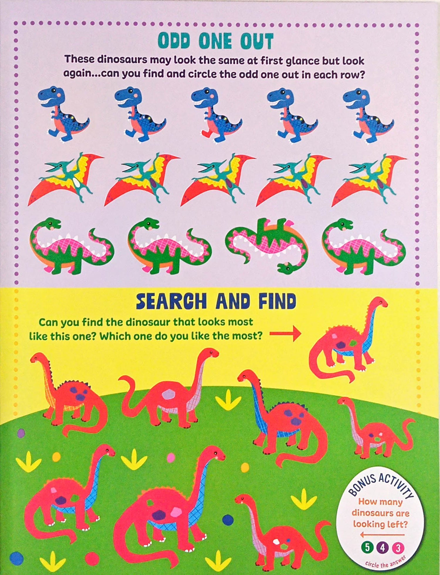 This roarsome DINOSAUR book is packed with activities, including mazes, spot the difference, picture puzzles and more. Join the dinosaurs and their friends for some super adventures!
