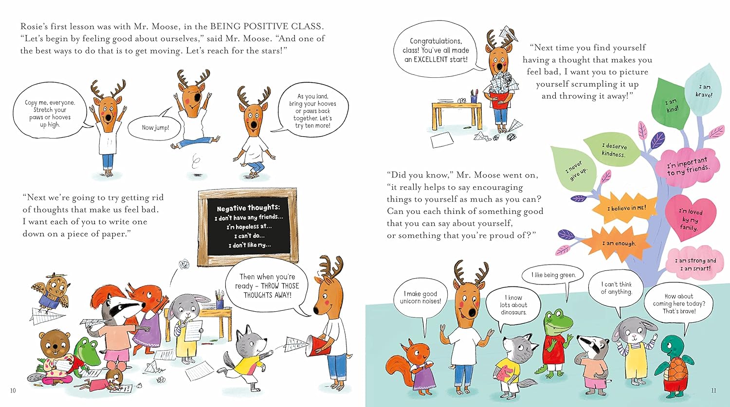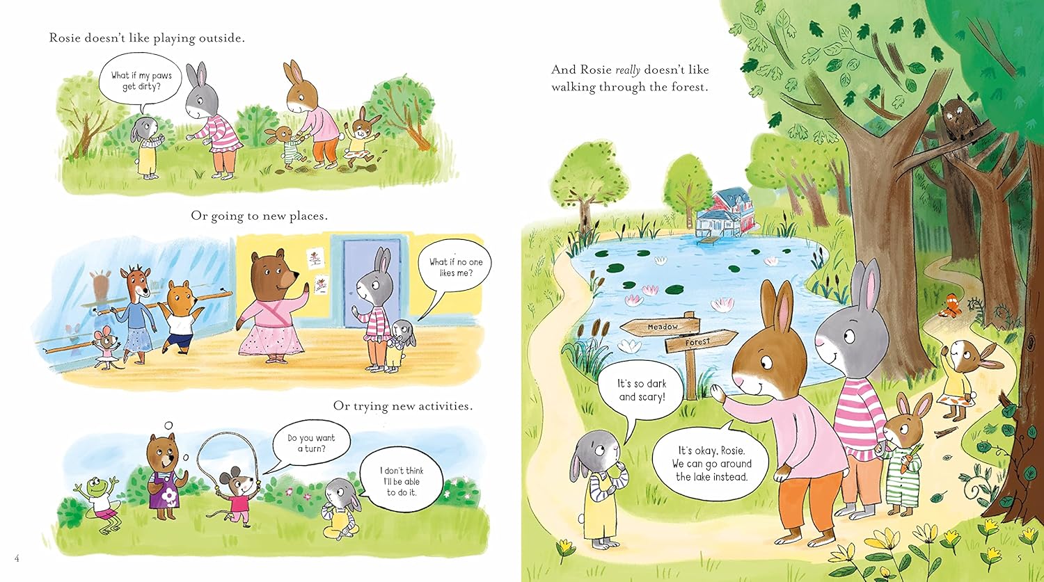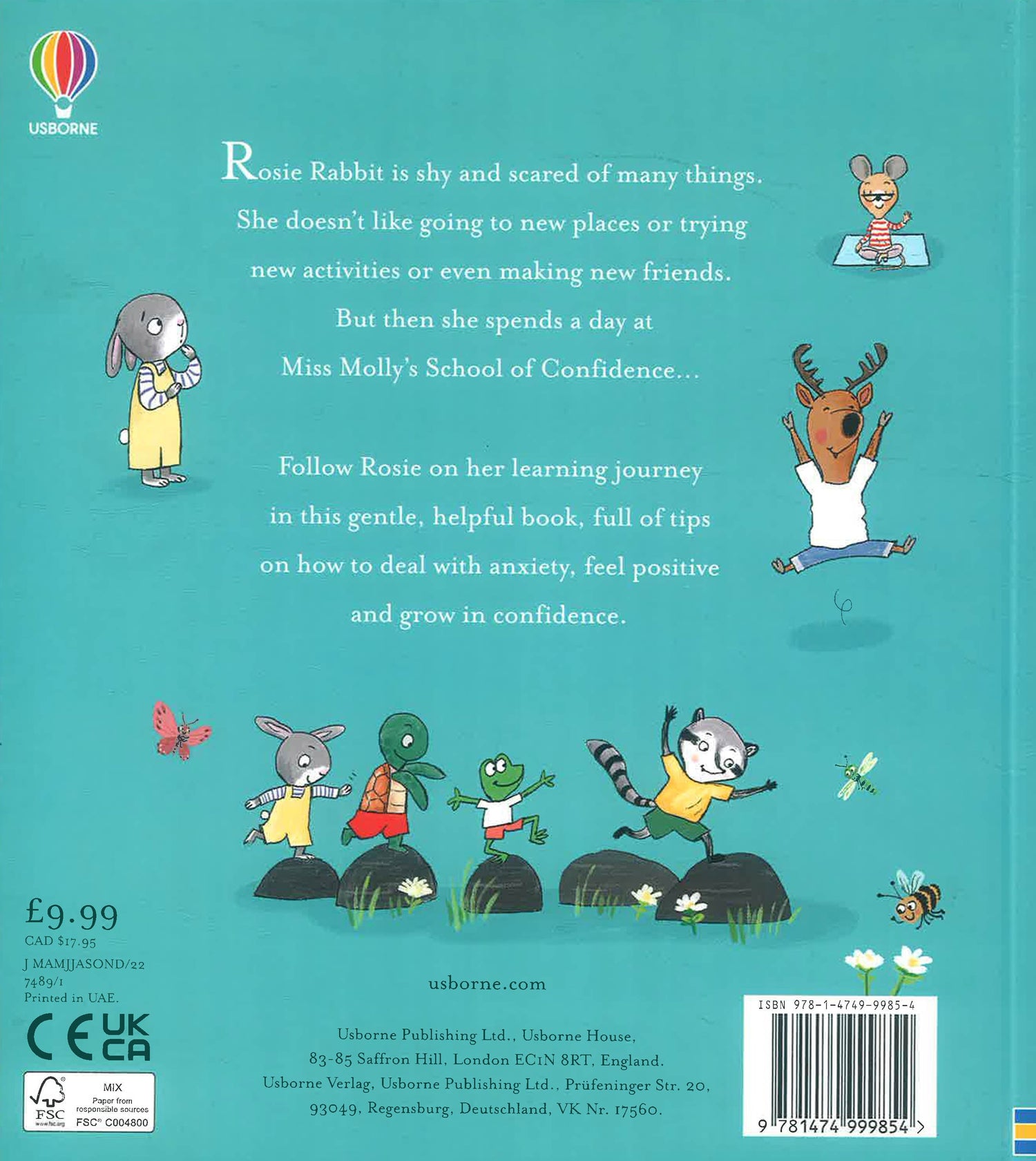 Rosie Rabbit is shy and scared of many things. So when she and her family come across Miss Molly's School of Confidence, Miss Molly welcomes her in. Here Rosie learns how to build her confidence, make friends and even teach Papa Rabbit a thing or two about overcoming your fears. A perfect way to start conversations with children about resilience and confidence issues, with humour, a gentle story, and a cast of lively animal characters.