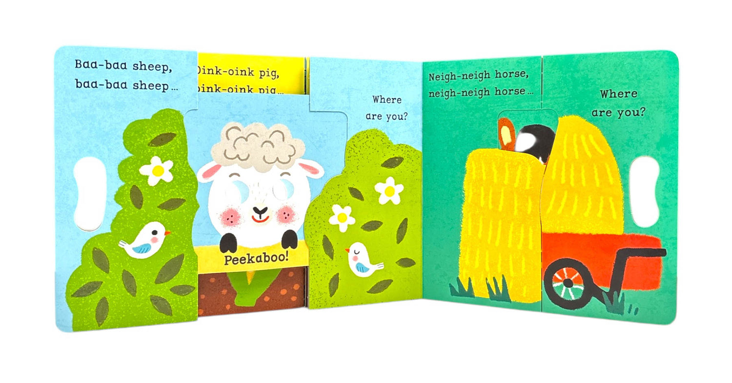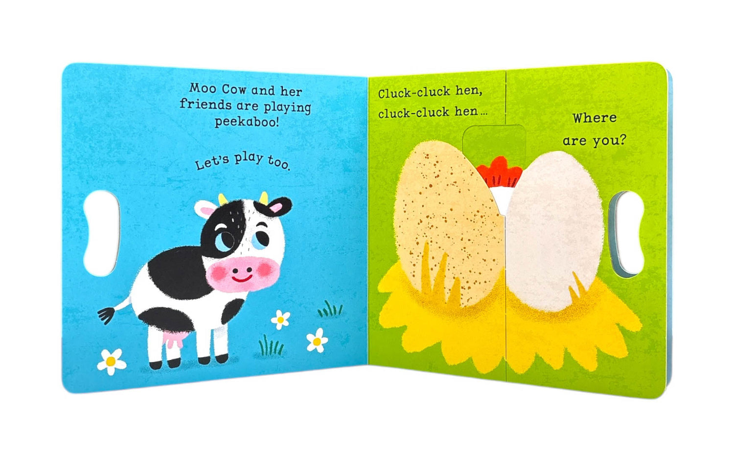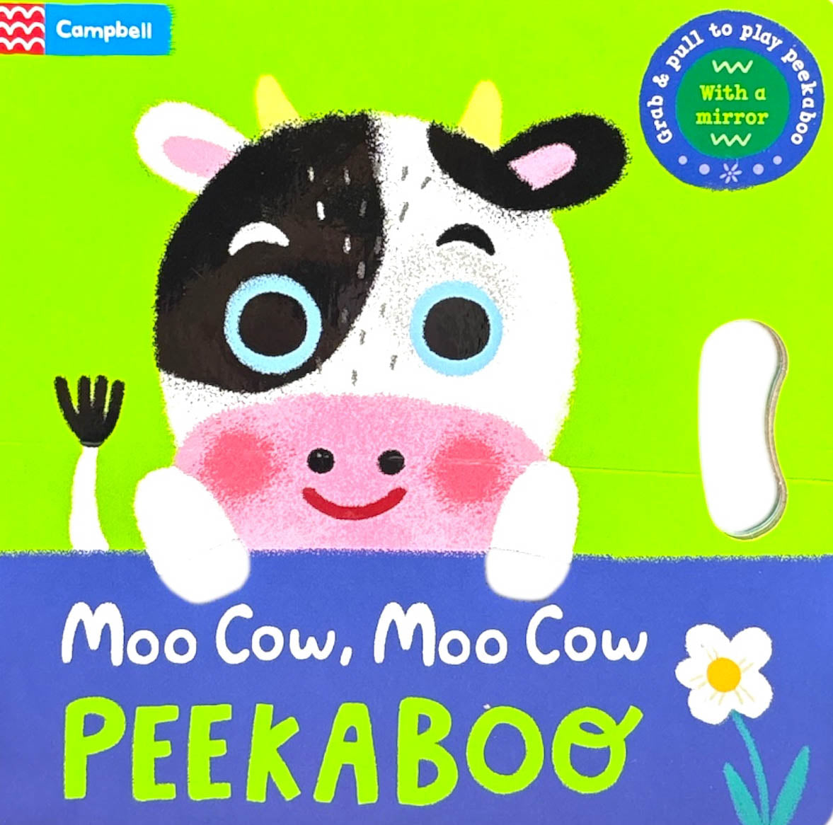 In Moo Cow, Moo Cow, PEEKABOO, babies' favourite game is brought to life with easy grab-and-pull mechanisms and a shiny mirror.