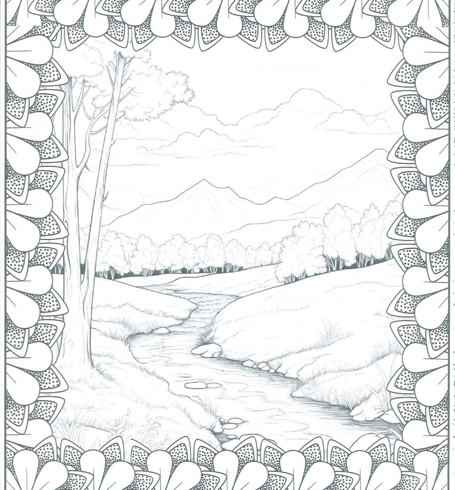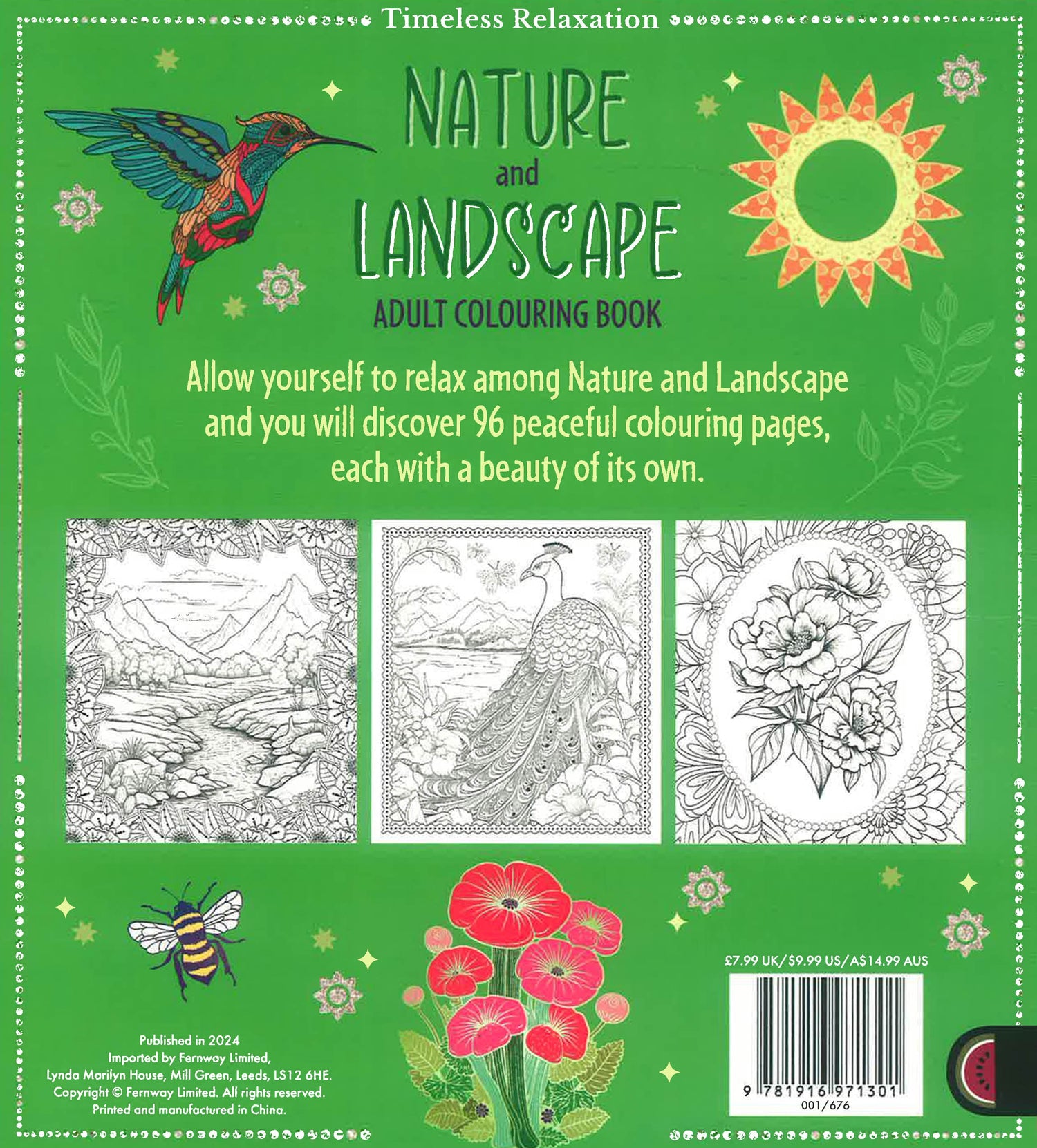 Allow yourself to relax among Nature and Landscape and you will discover 96 peaceful colouring pages, each with a beauty of its own.