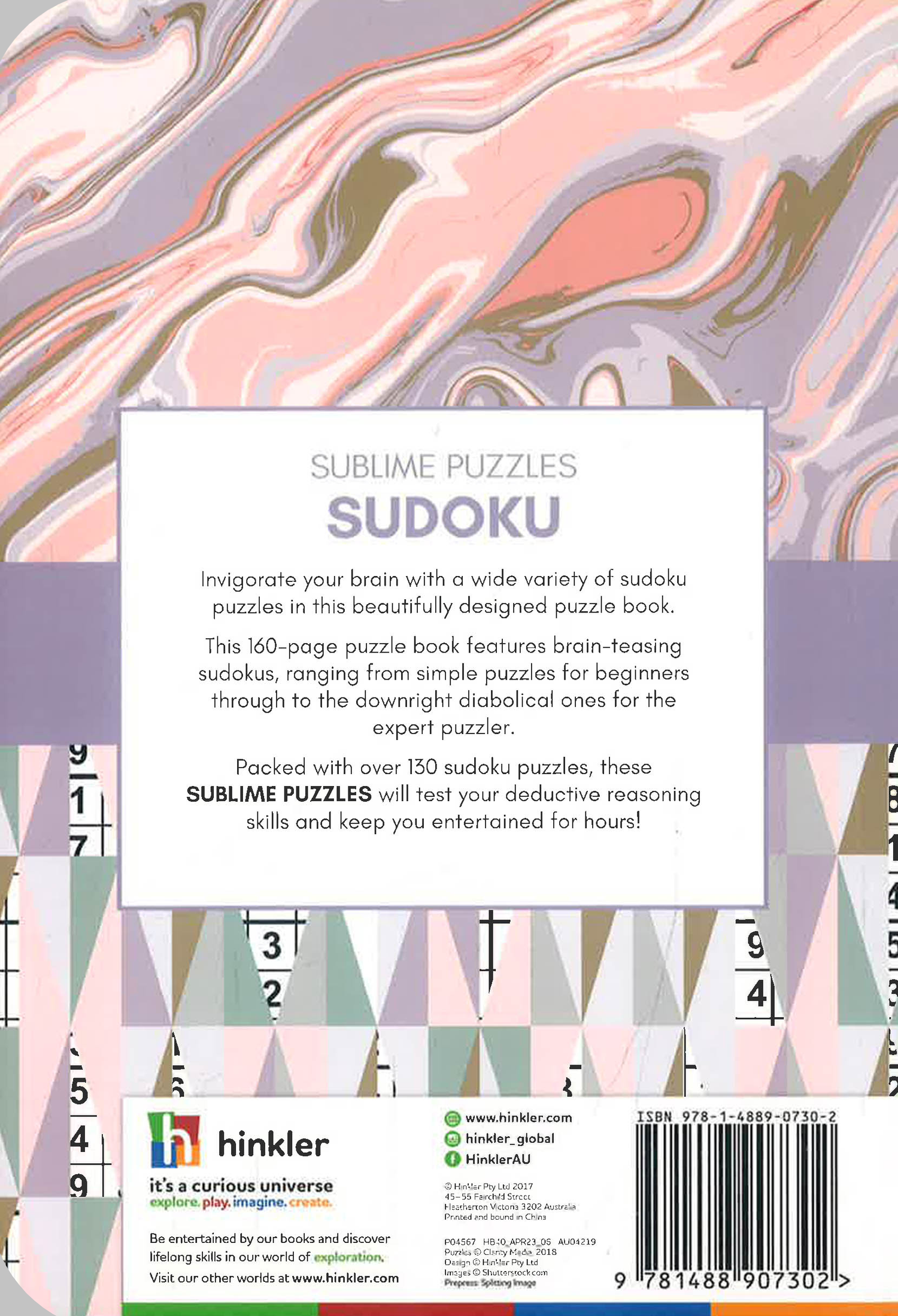 Invigorate your brain with a wide variety of sudoku puzzles in this beautifully designed puzzle book. This 160 page book features brain-teasing sudokus ranging from simple puzzles for beginners through to the downright diabolical ones for expert puzzlers. Packed with over 130 sudoku puzzles these Sublime Puzzles will test your deductive reasoning skills and keep you entertained for hours Collect all this amazing new Sublime Puzzle series.