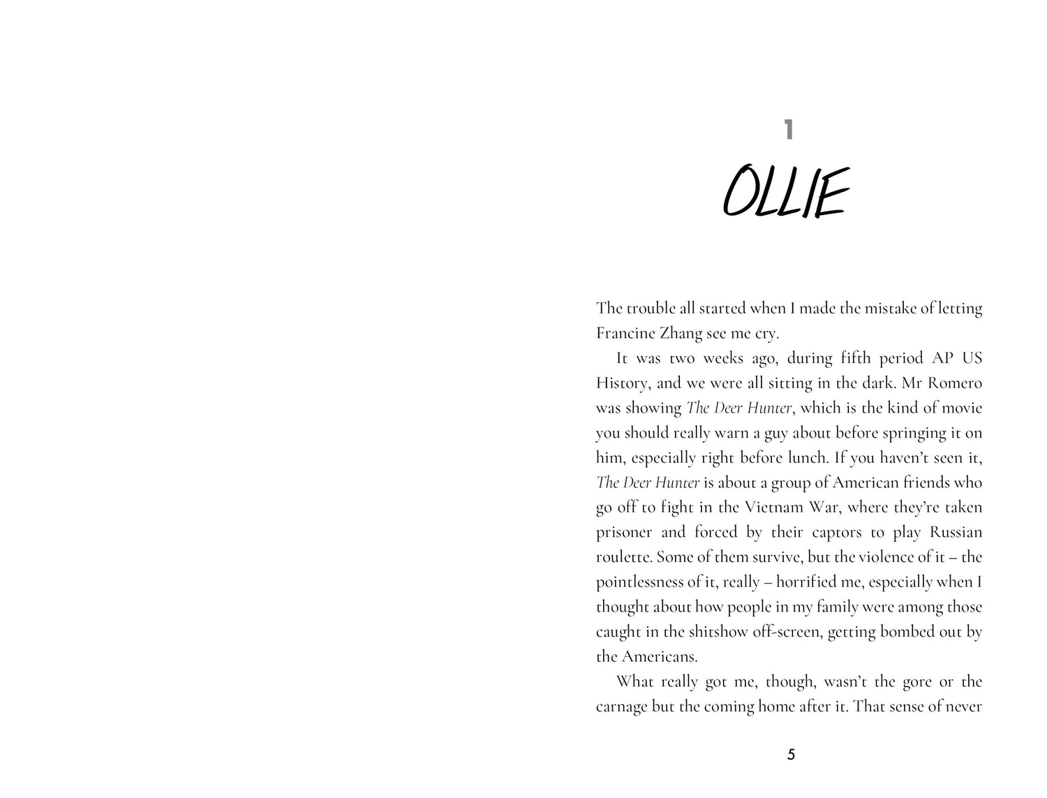 The boy: Ollie. Family friend, former crush, no idea how Francine has convinced him to get mixed up in her off-the-wall, and totally sexist, honorary grandson plan.