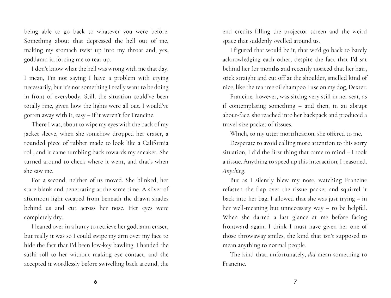 The plan: might work. But as Ollie and Francine's worlds collide, their secrets get tangled, and so do their feelings. Sometimes what you really want, isn't at all what you expected.