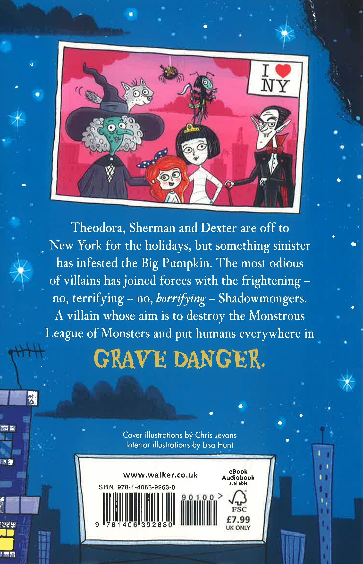 Theodora, Sherman and Dexter are off to the Big Apple for the holidays, and they cannot wait! However, if Dracula and Mummy thought an overseas trip would keep Theodora safe from bad monsters with sinister intentions, they were wrong. For New York is teeming with Shadowmongers – sly, shadowy creatures controlled by the most sinister foe of all. A foe who wants nothing more than to see the Monstrous League of Monsters brought down ... and Theodora with it.