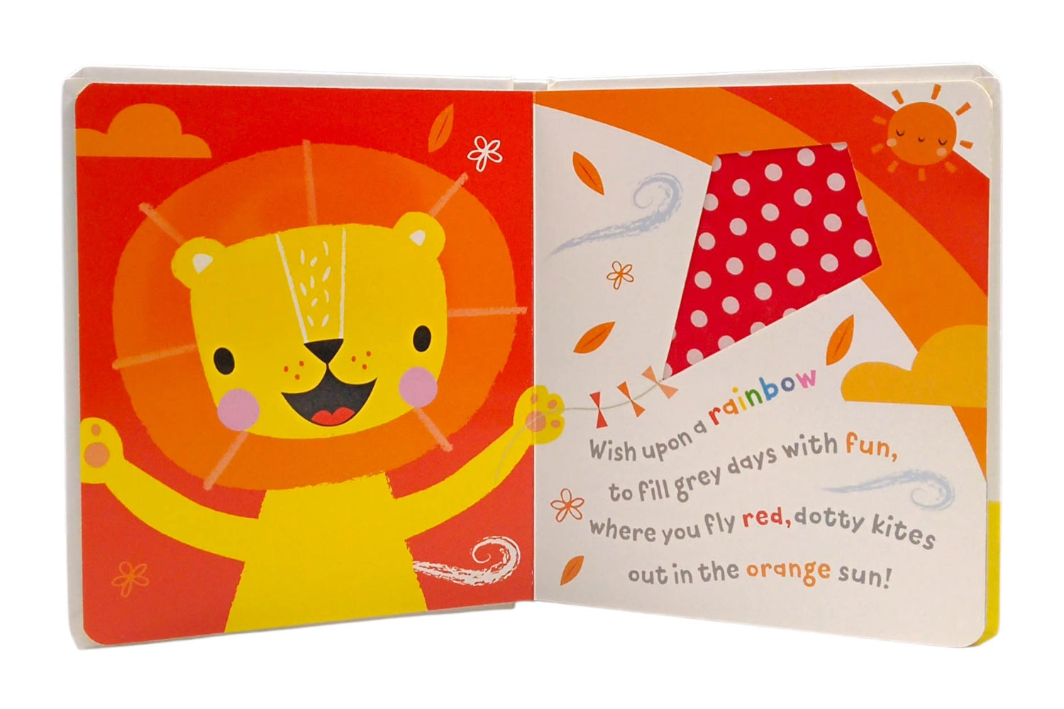 A rainbow-themed board book that teaches colours in a fun and unique way. Each spread features a different colour of the rainbow with a sweet rhyme, adorable illustrations, and touch-and-feel embellishments. A RAINBOW-THEMED BOARD BOOK WITH COLOURFUL TOUCH-AND-FEEL AREAS THROUGHOUT