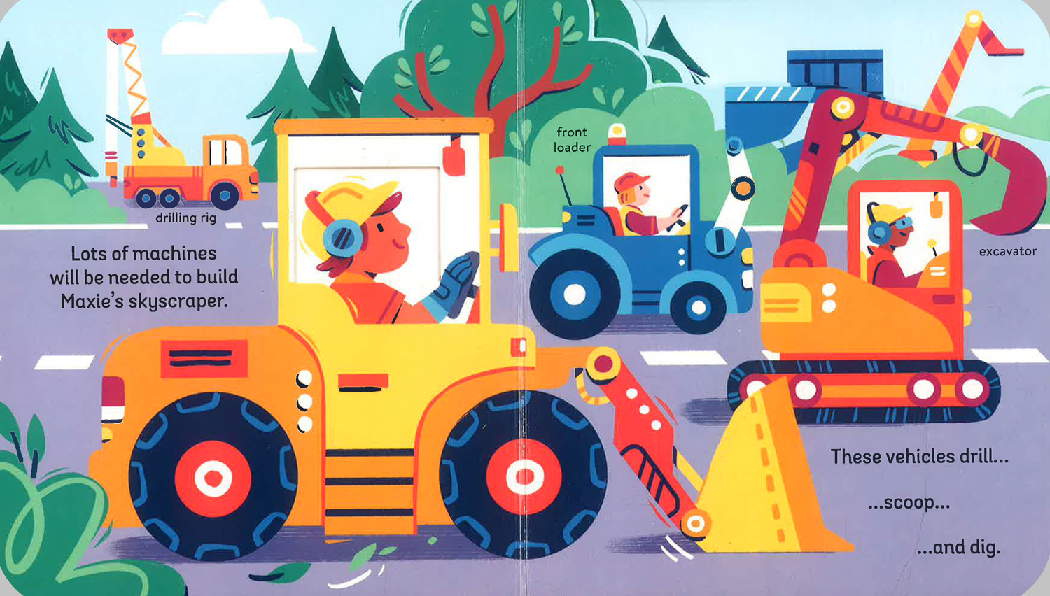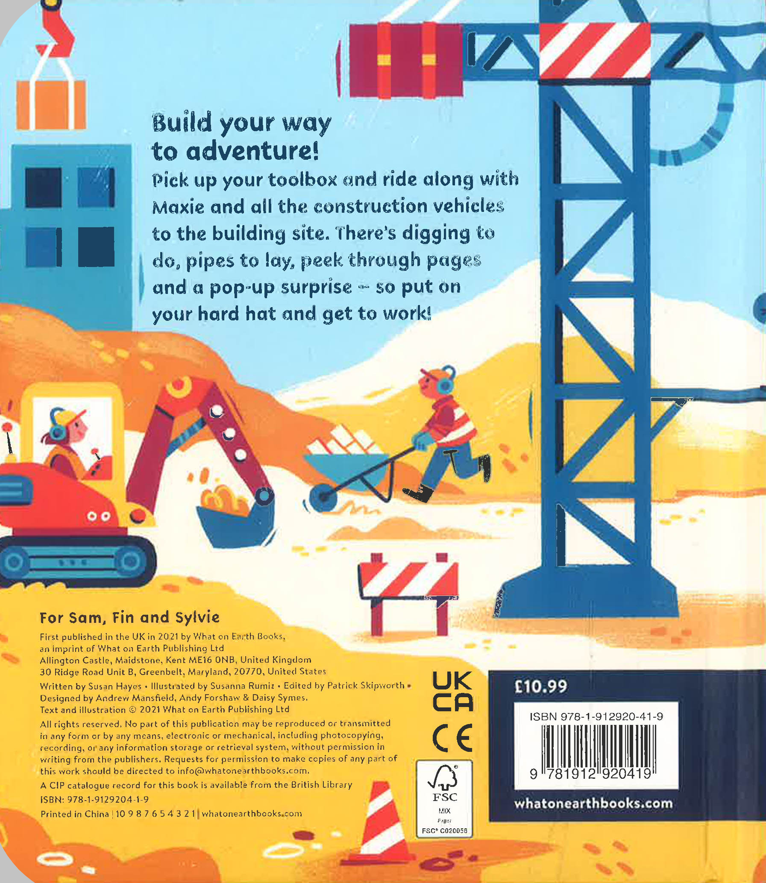 Join Maxie as they build their dream skyscraper from the ground up. Zoom: Building Site Adventure is the next entry is What on Earth Books' Zoom series of 36-page board books written by Susan Hayes, with peek-a-boo holes through the pages and a surprise popup.