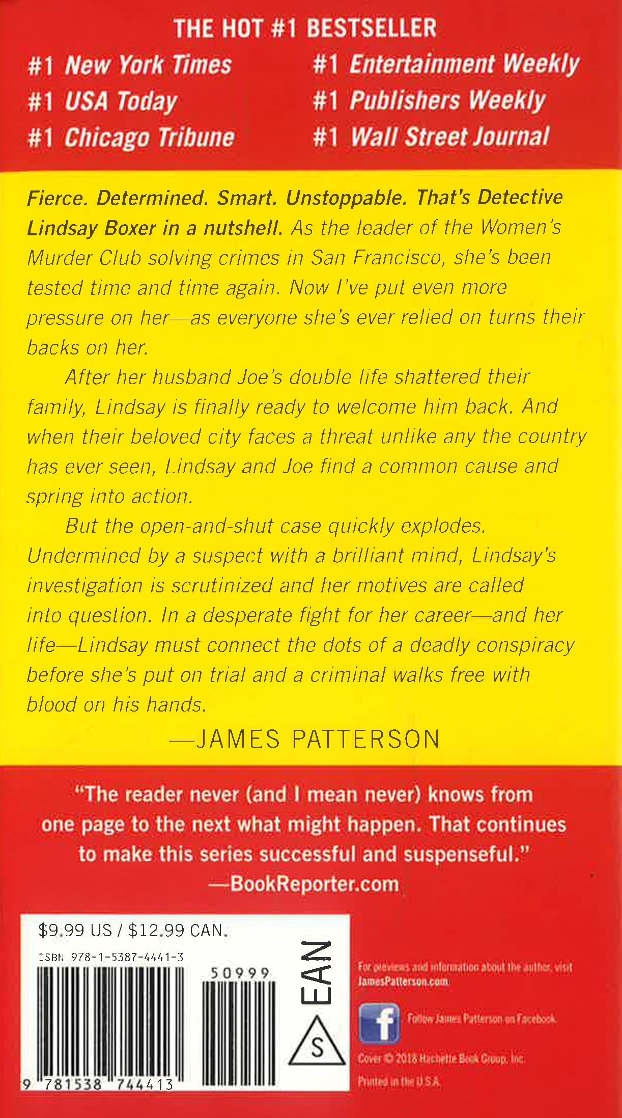 Still recovering from her husband's betrayal, Detective Lindsay Boxer faces a series of heart-stopping crimes and a deadly conspiracy that threatens to destroy San Francisco.