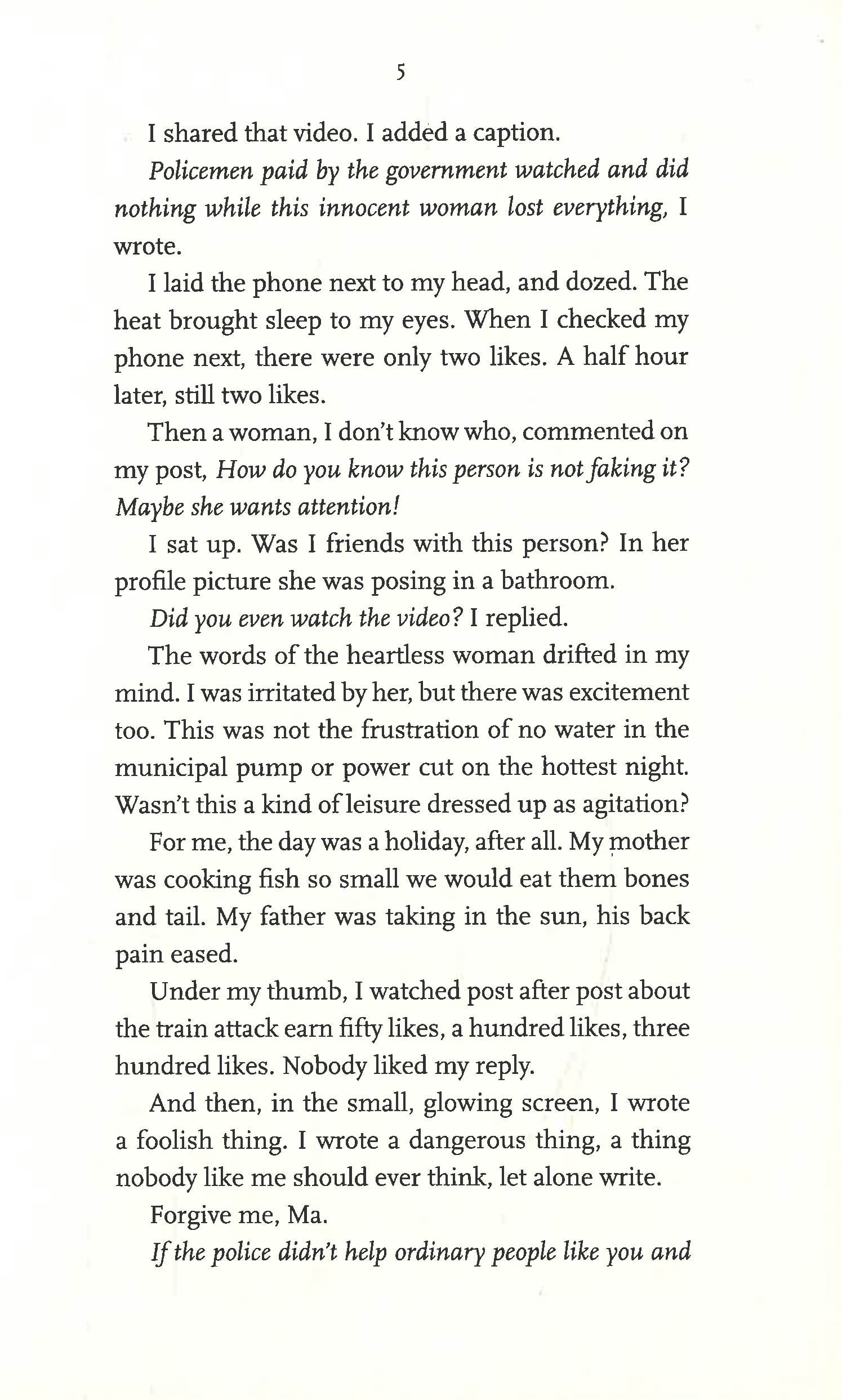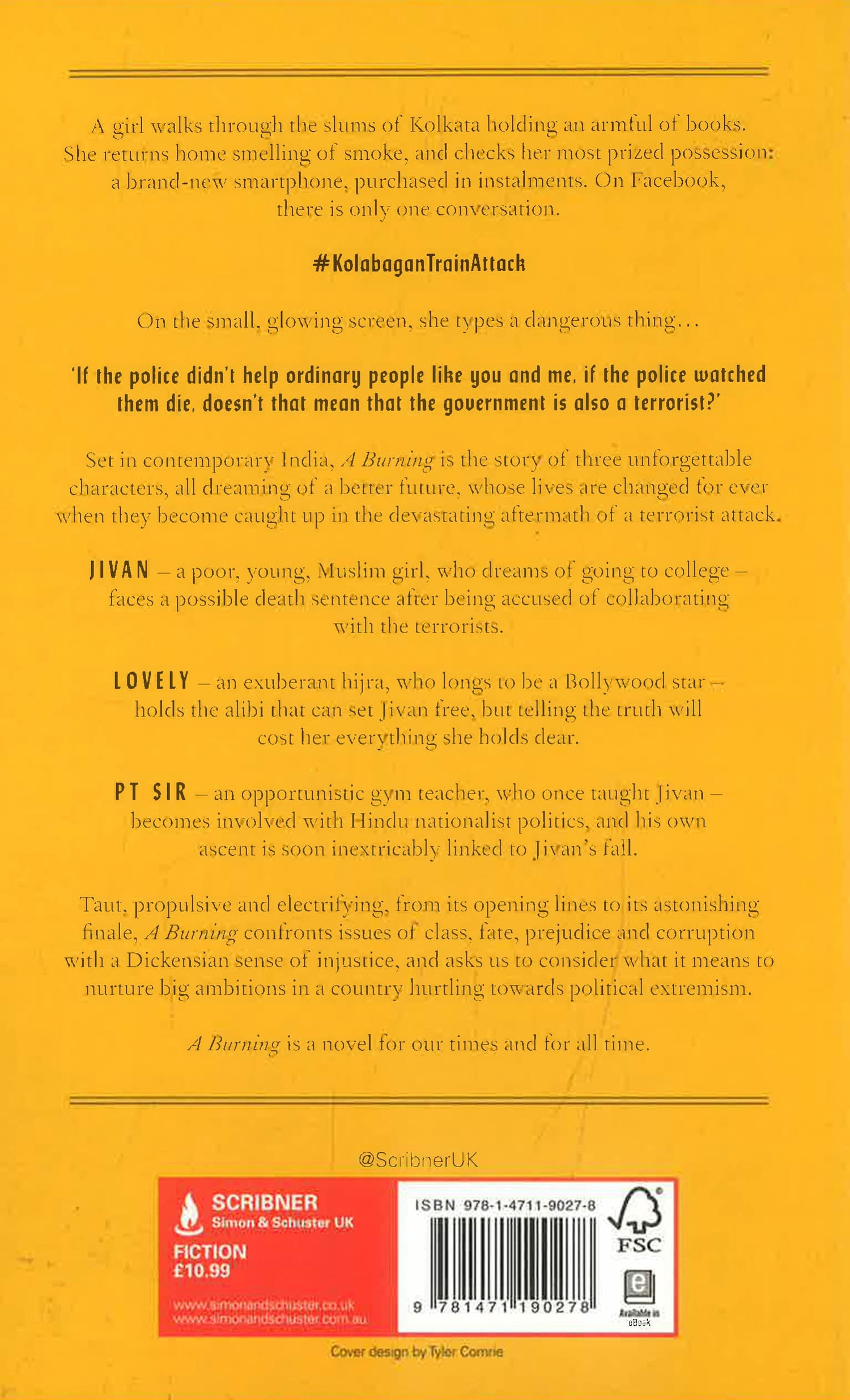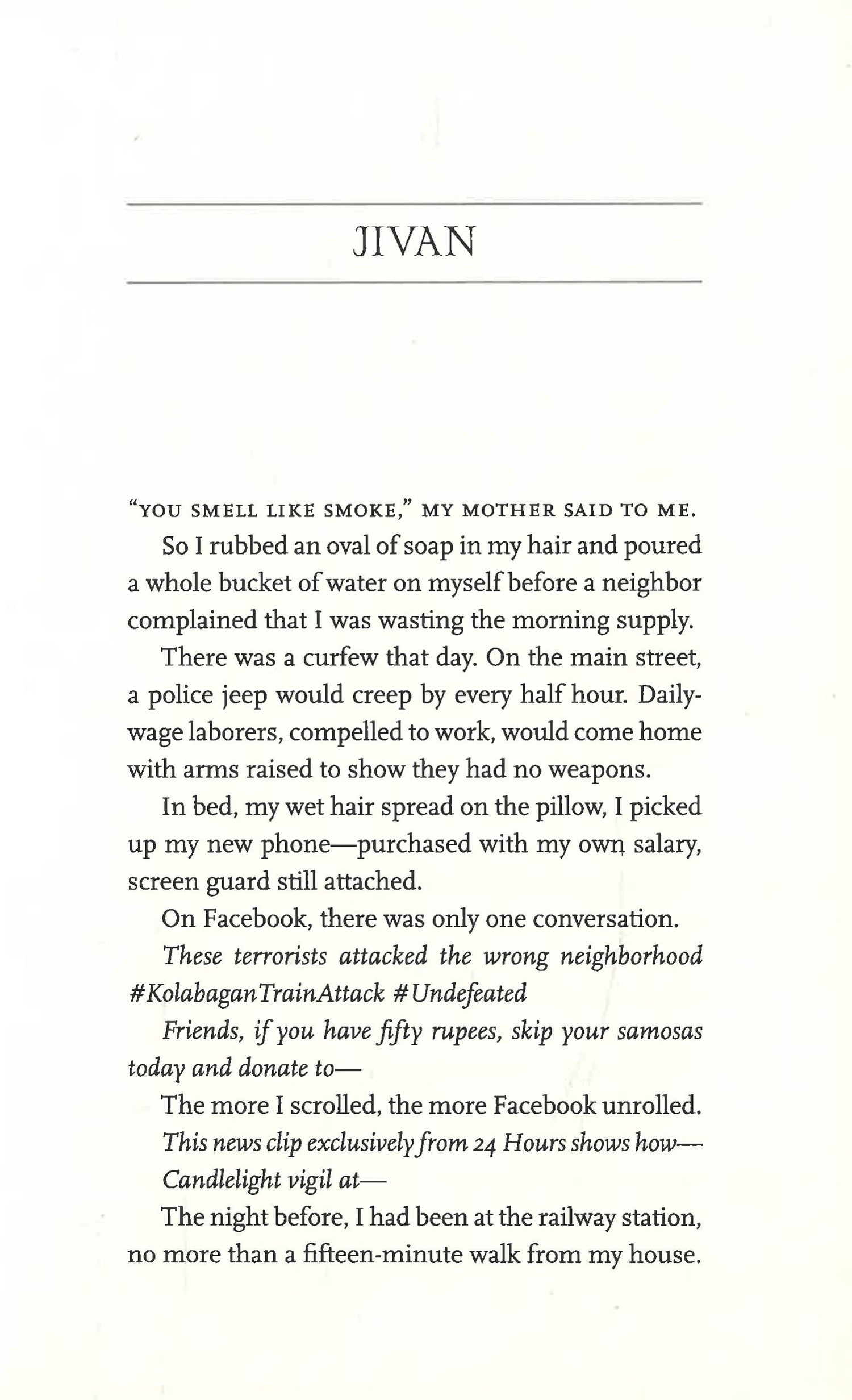 Jivan is a Muslim girl from the slums, determined to move up in life, who is accused of executing a terrorist attack on a train because of a careless comment on Facebook. PT Sir is an opportunistic gym teacher who hitches his aspirations to a right-wing political party, and finds that his own ascent becomes linked to Jivan's fall. Lovely--an irresistible outcast whose exuberant voice and dreams of glory fill the novel with warmth and hope and humor--has the alibi that can set Jivan free, but it will cost her everything she holds dear.