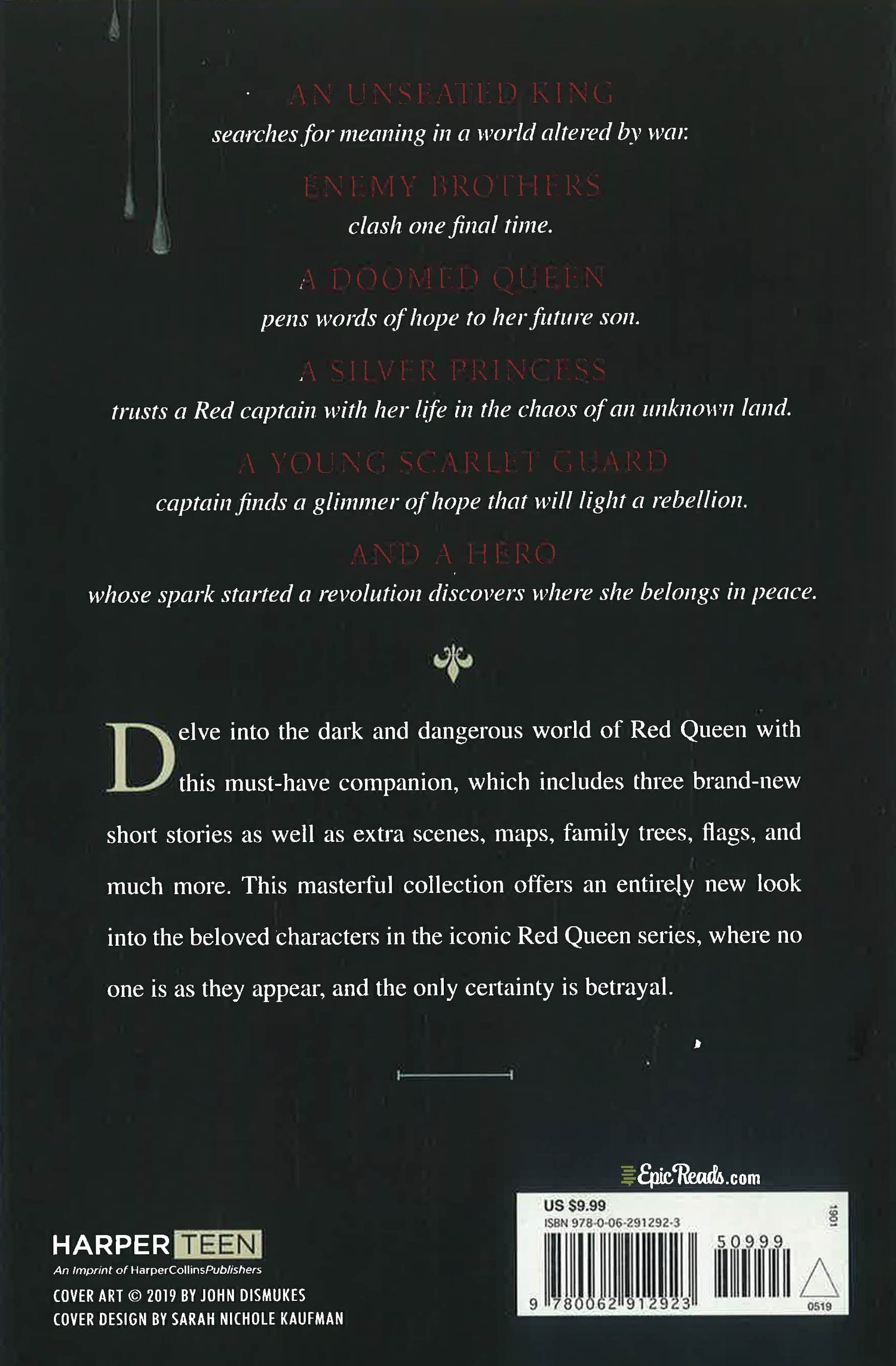 The perfect addition to the #1 New York Times bestselling Red Queen series, this gorgeously designed package features three brand-new novellas, two previously published novellas, Steel Scars and Queen Song, and never-before-seen maps, flags, bonus scenes, journal entries, and much more exclusive content.