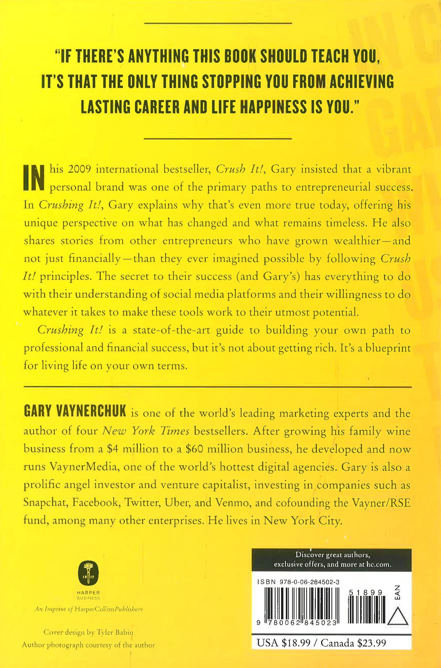 Crushing It! is a state-of-the-art guide to building your own path to professional and financial success, but it’s not about getting rich. It’s a blueprint to living life on your own terms.