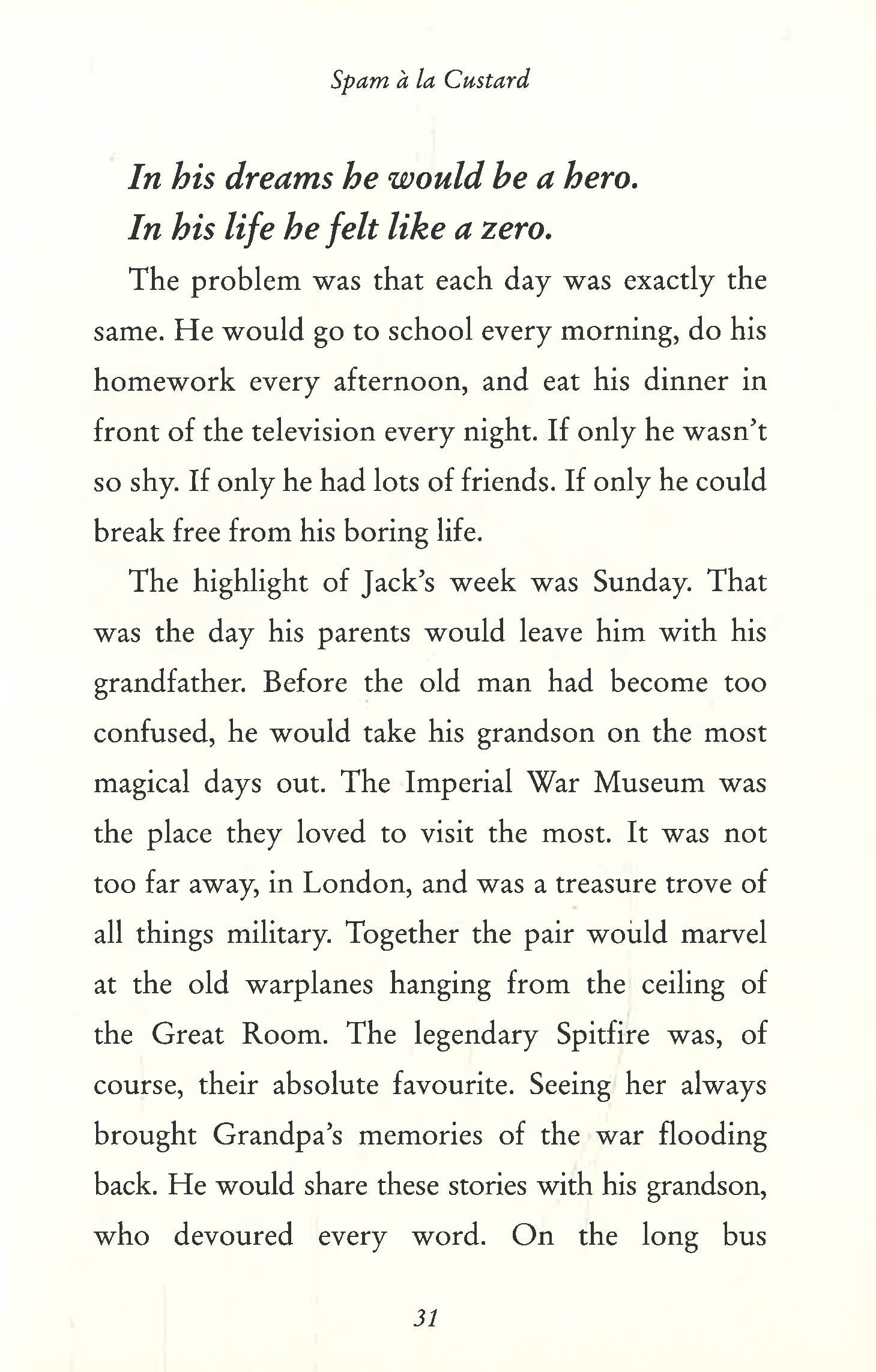 An exquisite portrait of the bond between a small boy and his beloved Grandpa – this book takes readers on an incredible journey with Spitfires over London and Great Escapes through the city in a high octane adventure full of comedy and heart.